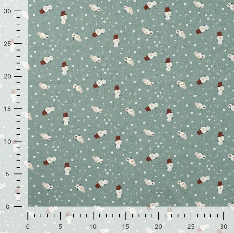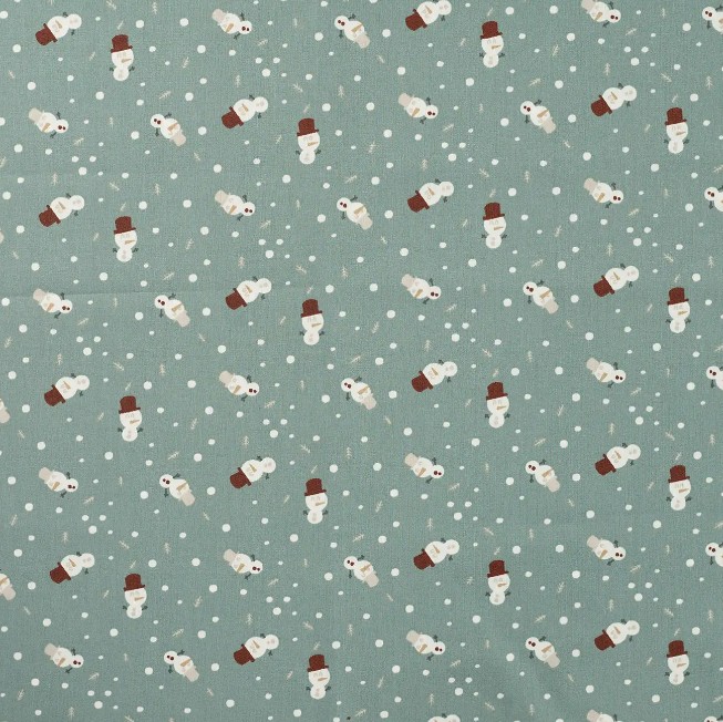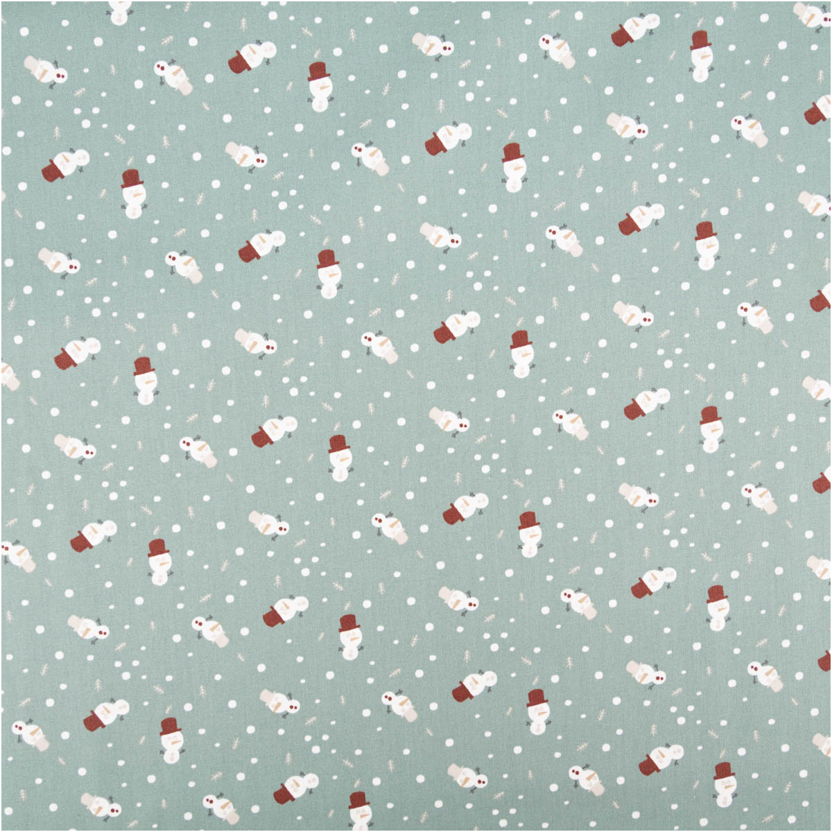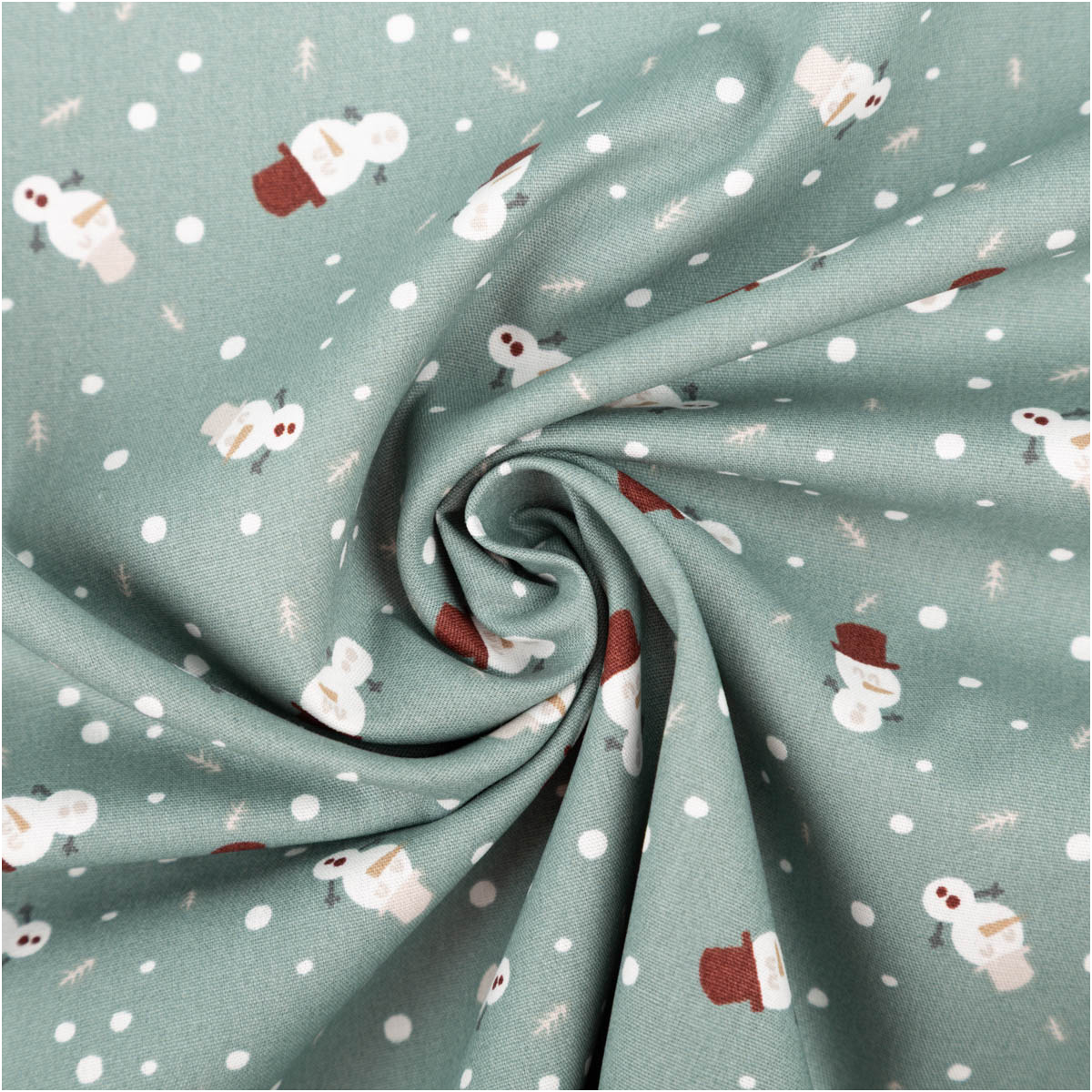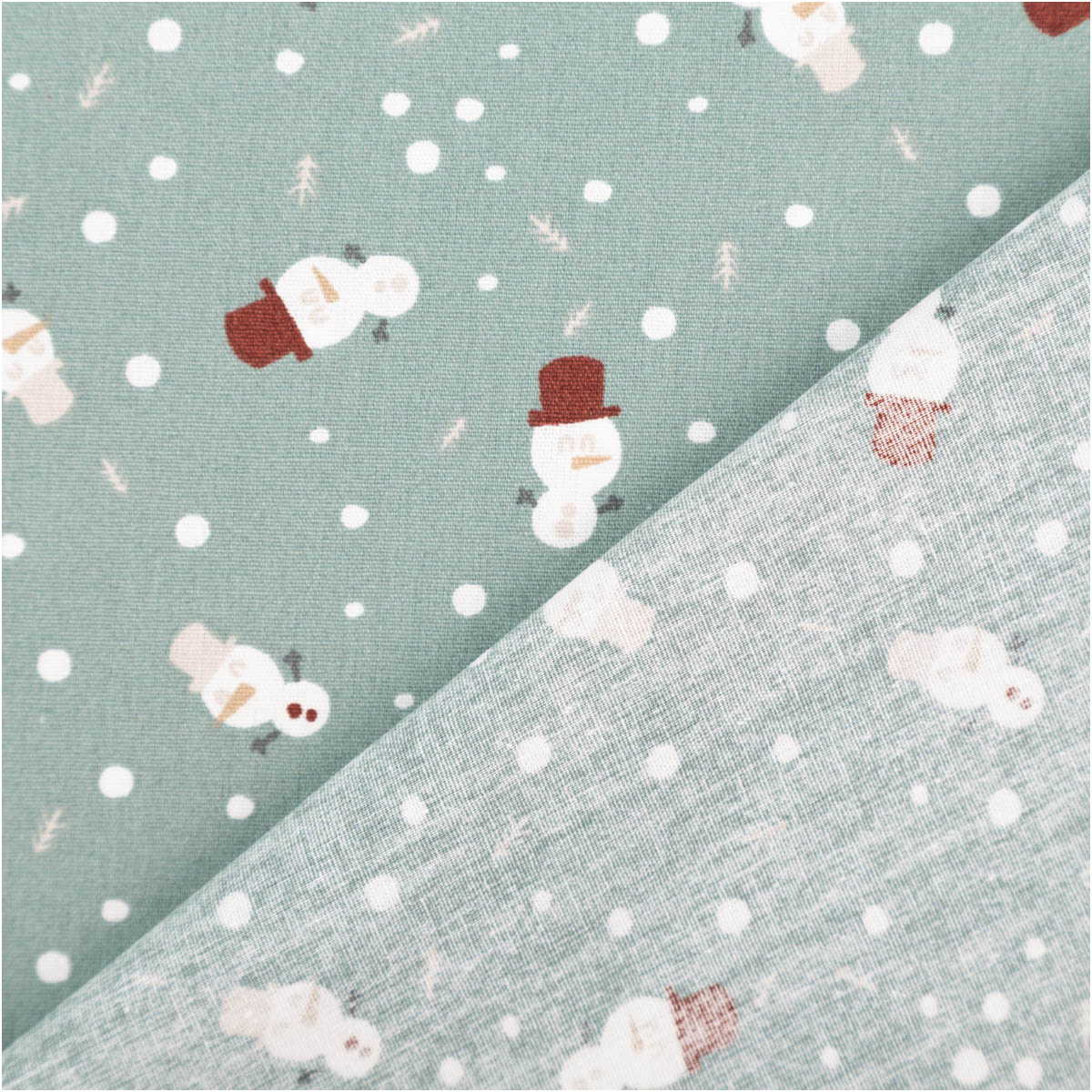 Weicher Popeline-Baumwollstoff mit Schneemann-Motiv in Mint