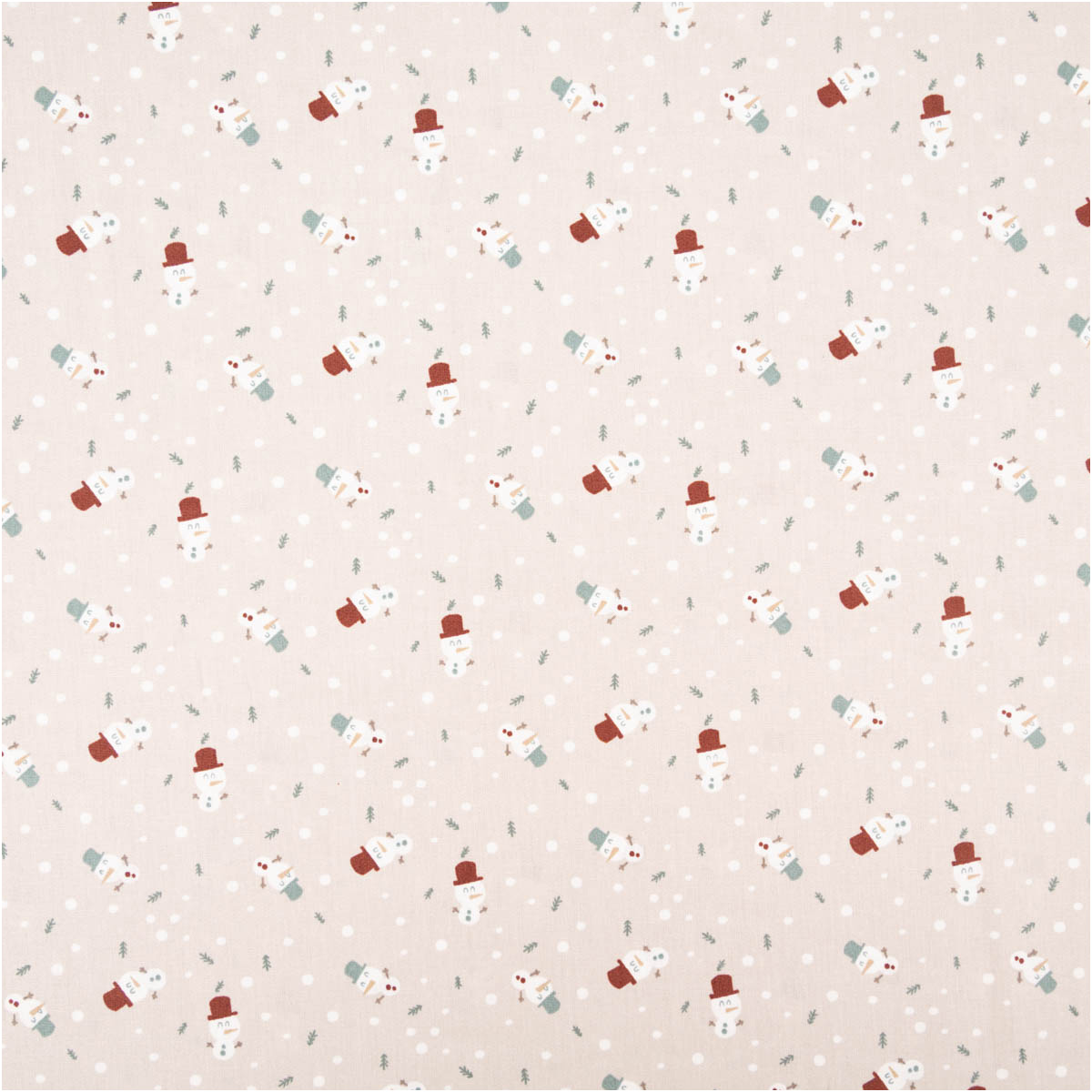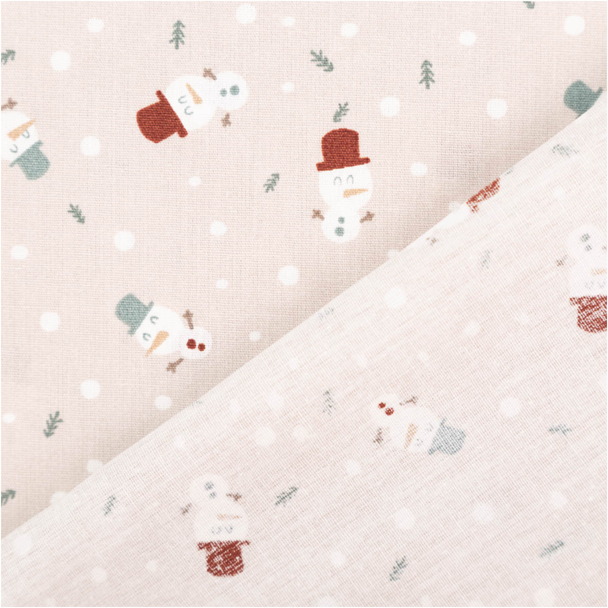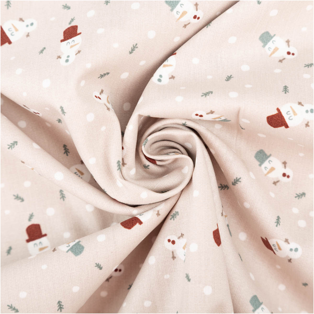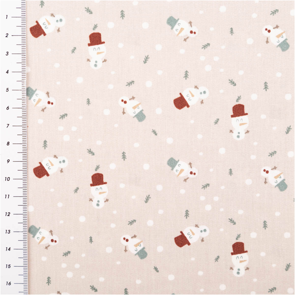 Weicher Popeline-Baumwollstoff mit Schneemann-Motiv in Sand