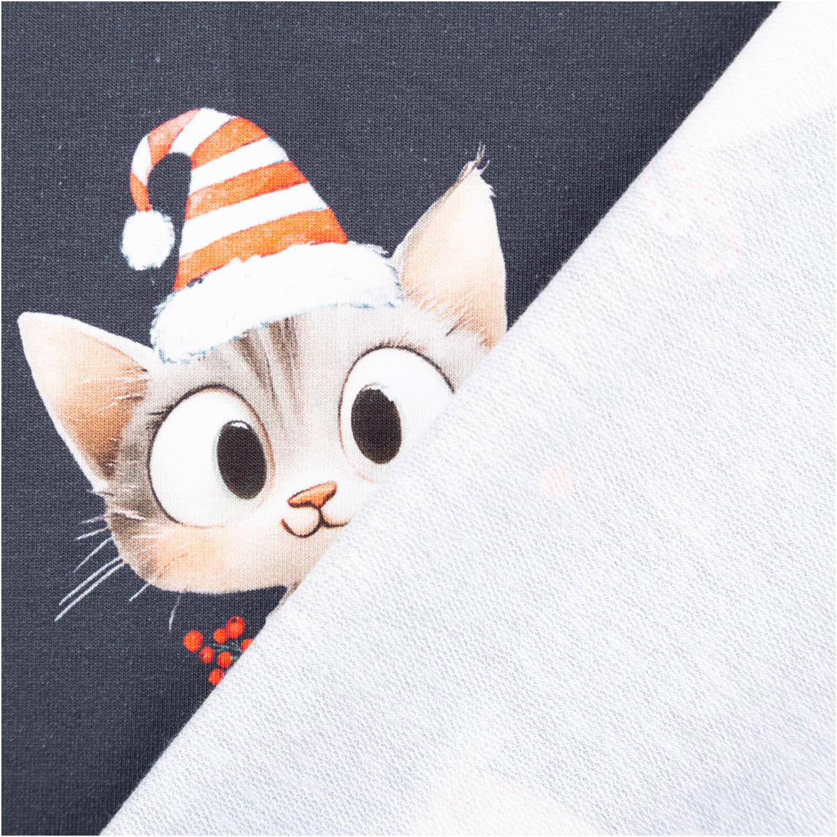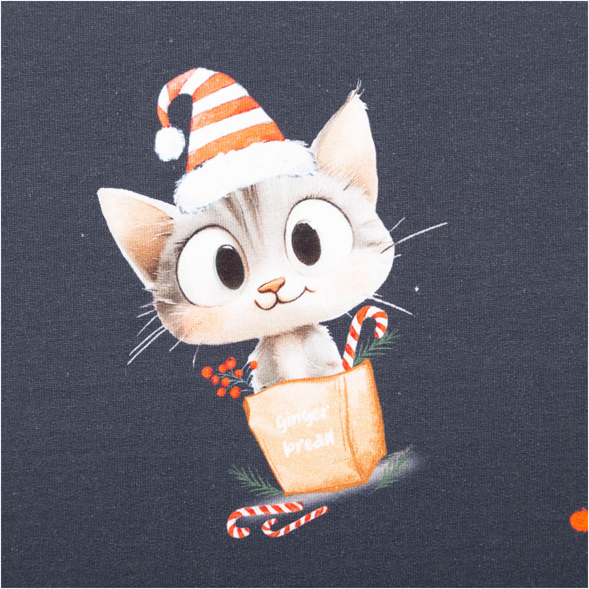 Weicher French Terry mit Weihnachtskatzen-Motiv in Dunkelblau