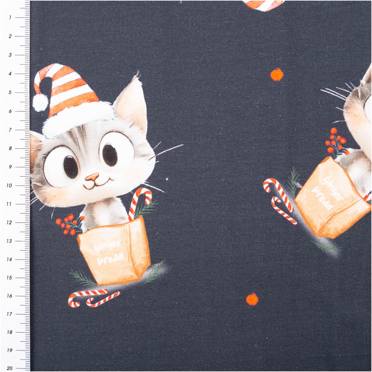 French Terry Naughty Kitty Weihnachtskatze Digitaldruck dunkelblau 145cm