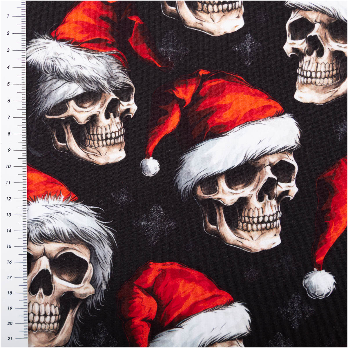 French Terry Weihnachtsstoff Skulls Totenköpfe schwarz rot 145cm