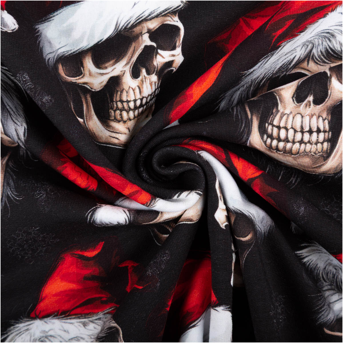 French Terry Christmas Skulls Totenköpfe schwarz rot