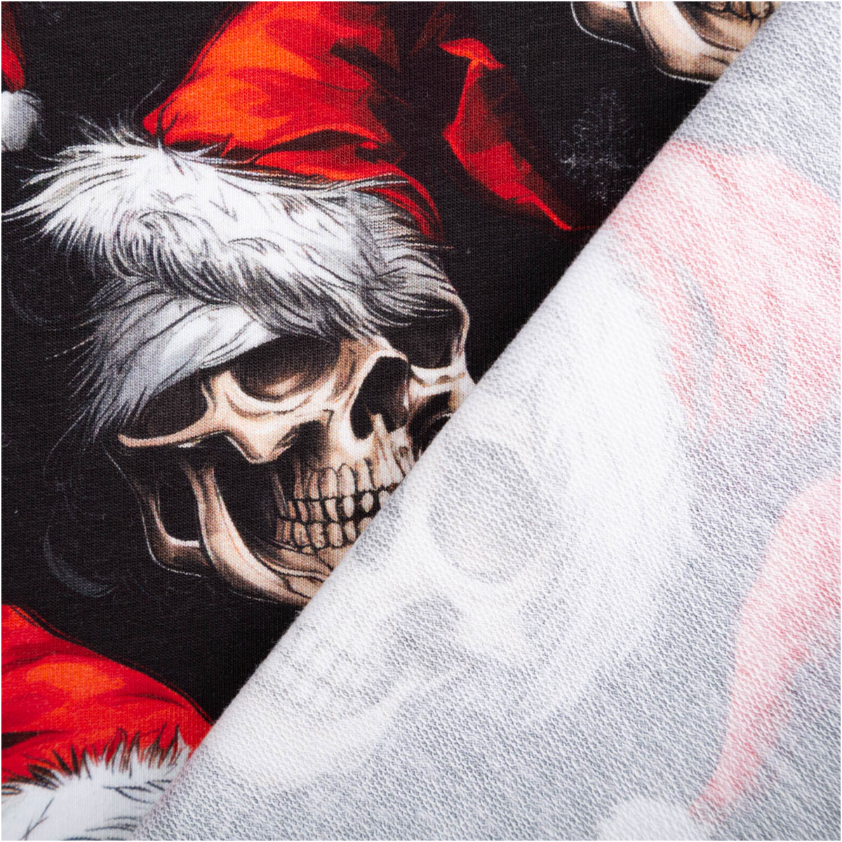 French Terry Stoff mit Totenkopf-Weihnachtsmotiv in Schwarz-Rot