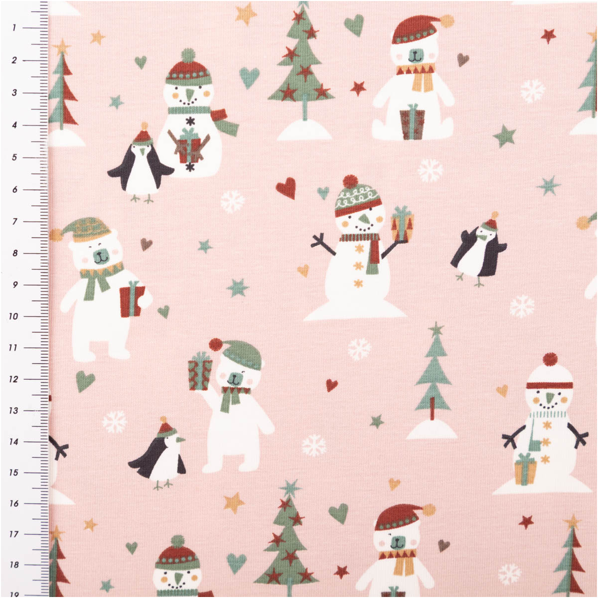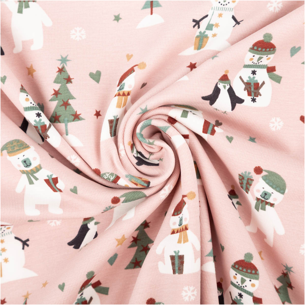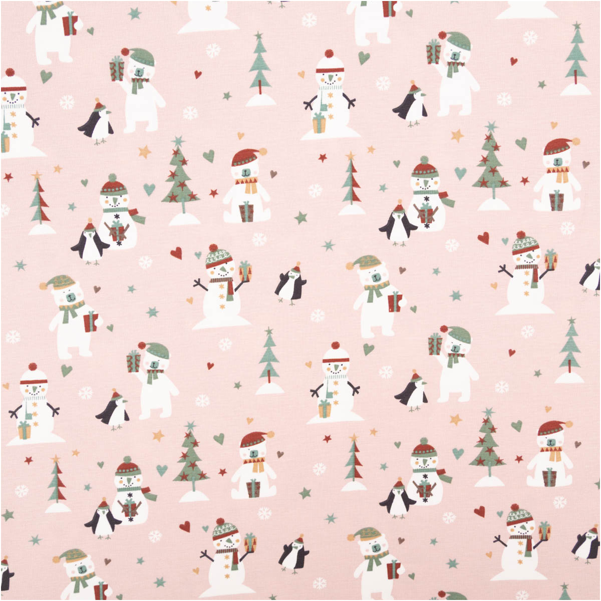 Dieser Baumwolljersey in zartem Rosa zeigt niedliche Schneemänner, Bären und Pinguine – perfekt für fröhliche Winter- und Weihnachtslooks. Der Stoff ist herrlich weich, elastisch durch ca. 5 % Spandex und dadurch superbequem. Dank des hohen Baumwollanteils fühlt er sich angenehm auf der Haut an, ist atmungsaktiv und allergikerfreundlich. Die Qualität ist schadstoffgeprüft (Zertifikat vorhanden, Klasse 1).