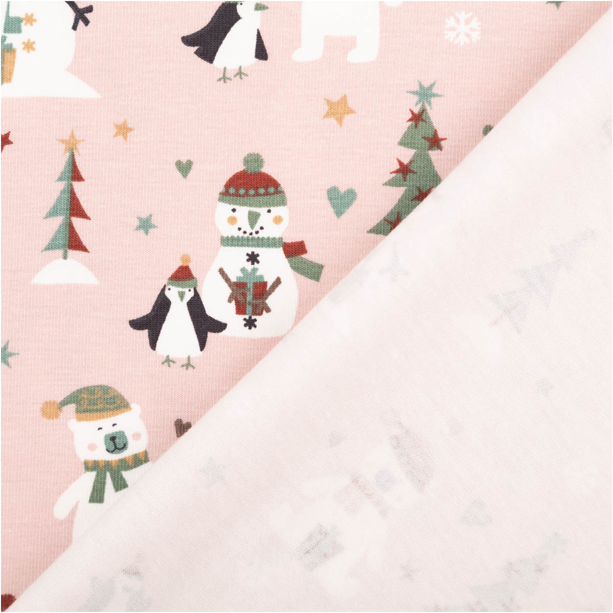 Motiv/Farbe: Rosa mit Schneemann-, Bär- & Pinguin-Motiven, kleine Sterne/Herzen/Schneeflocken