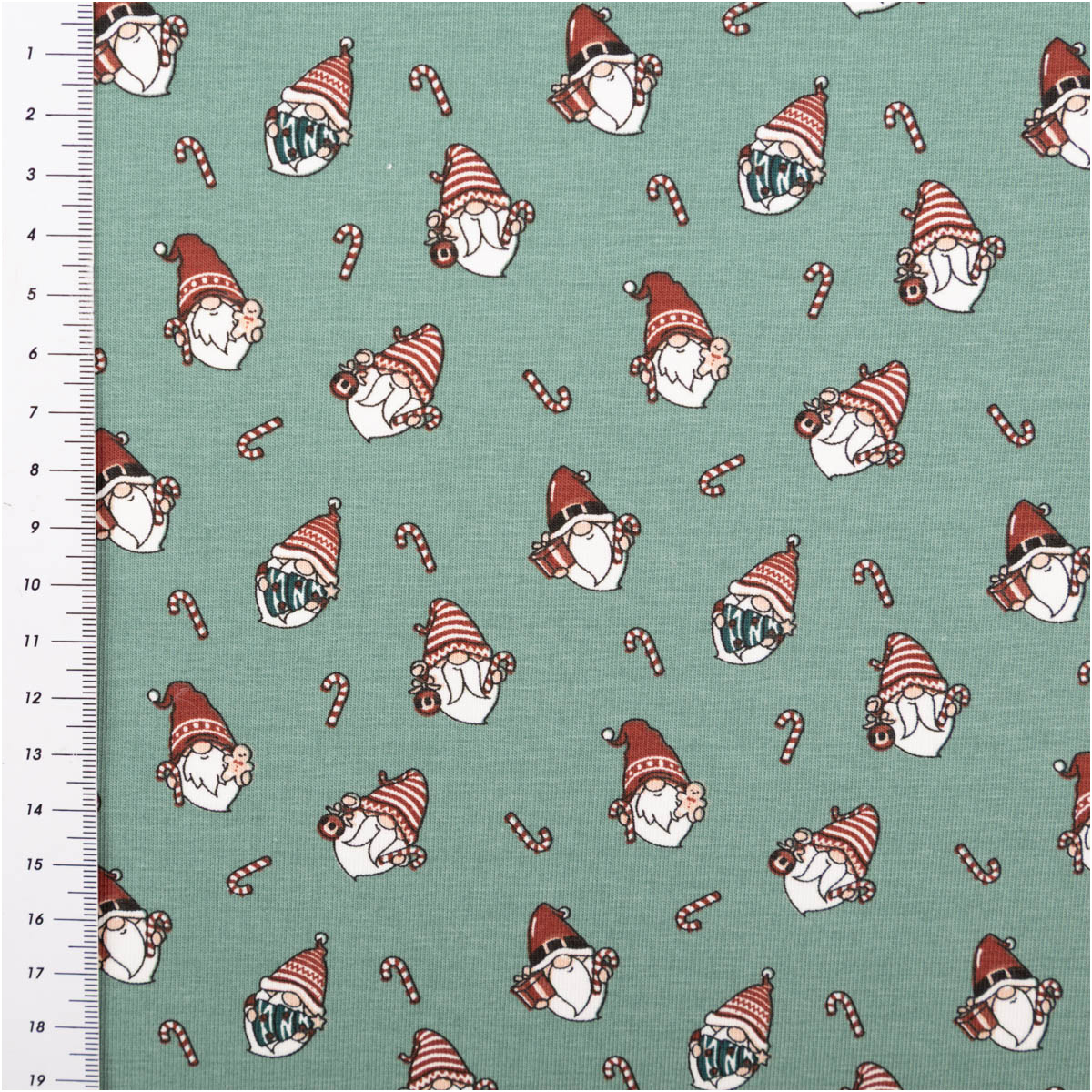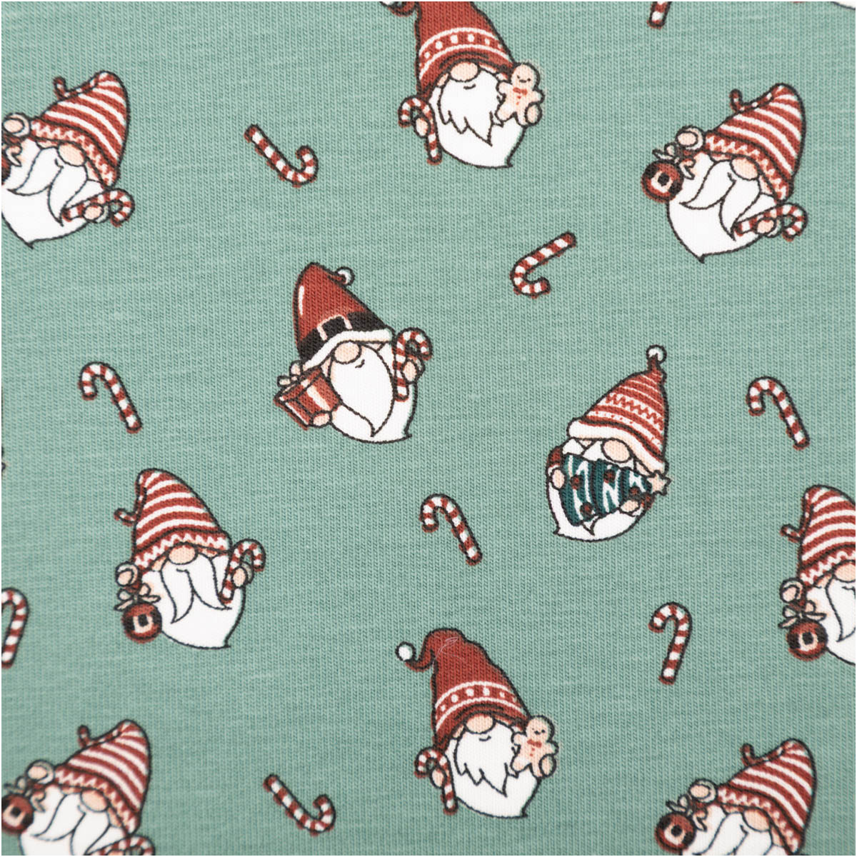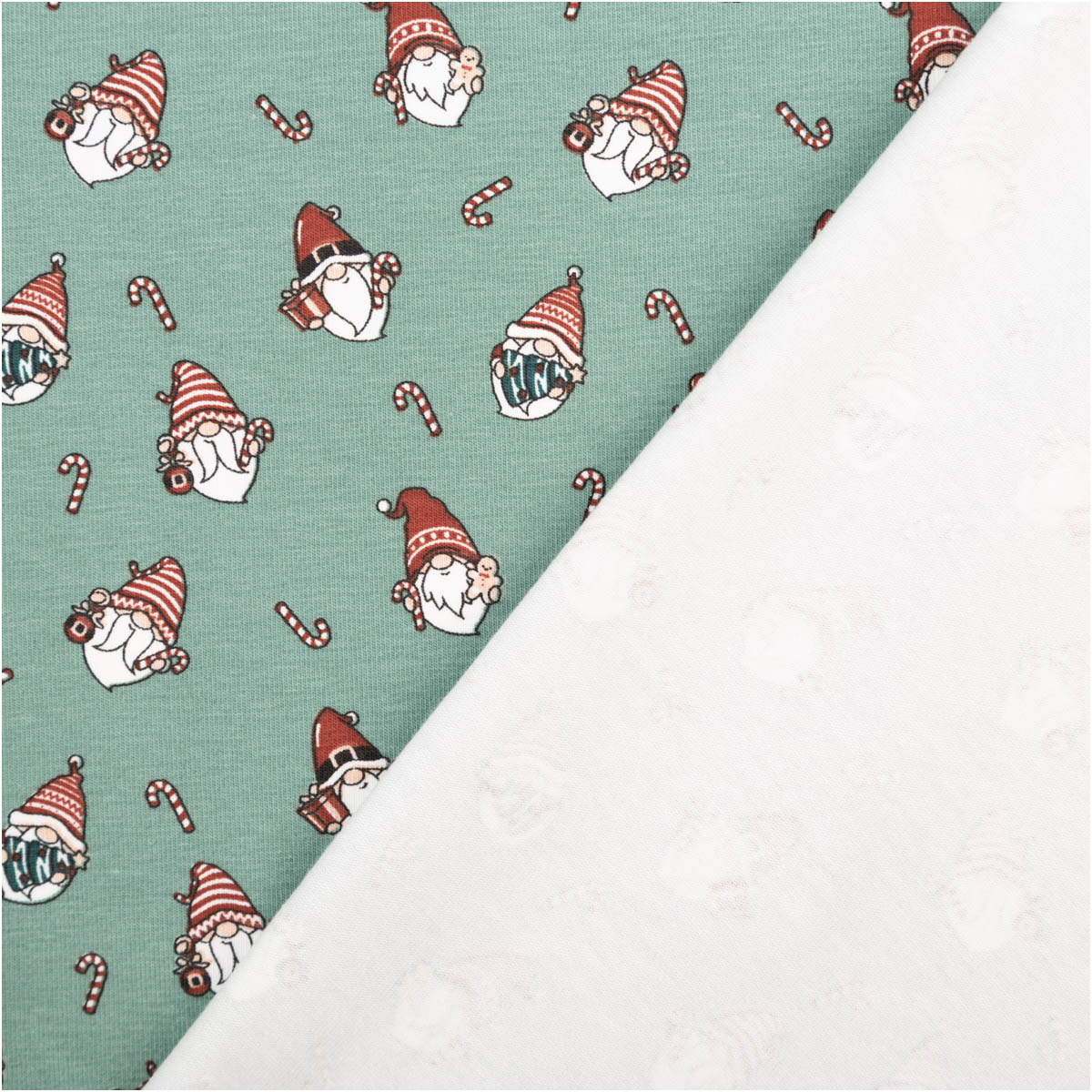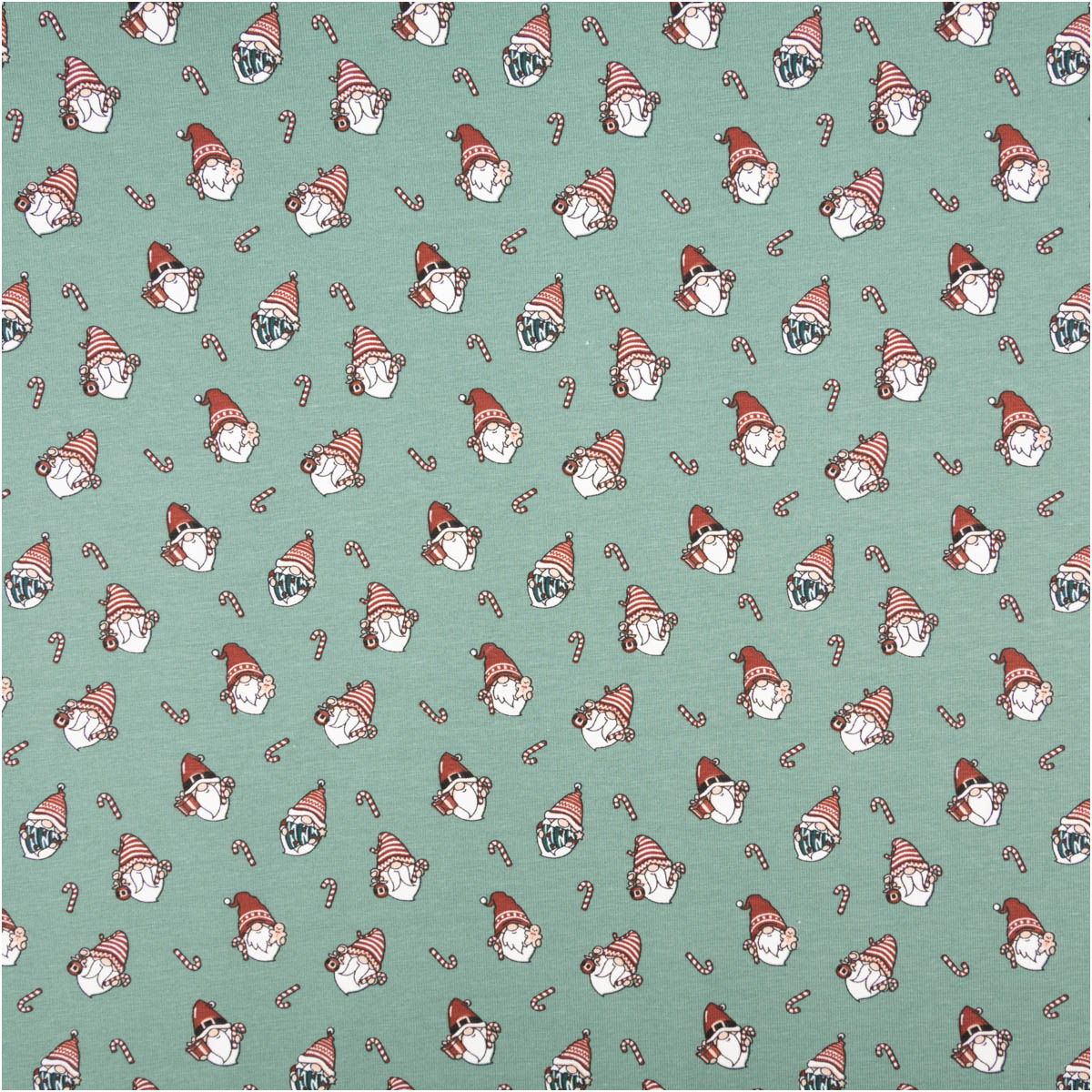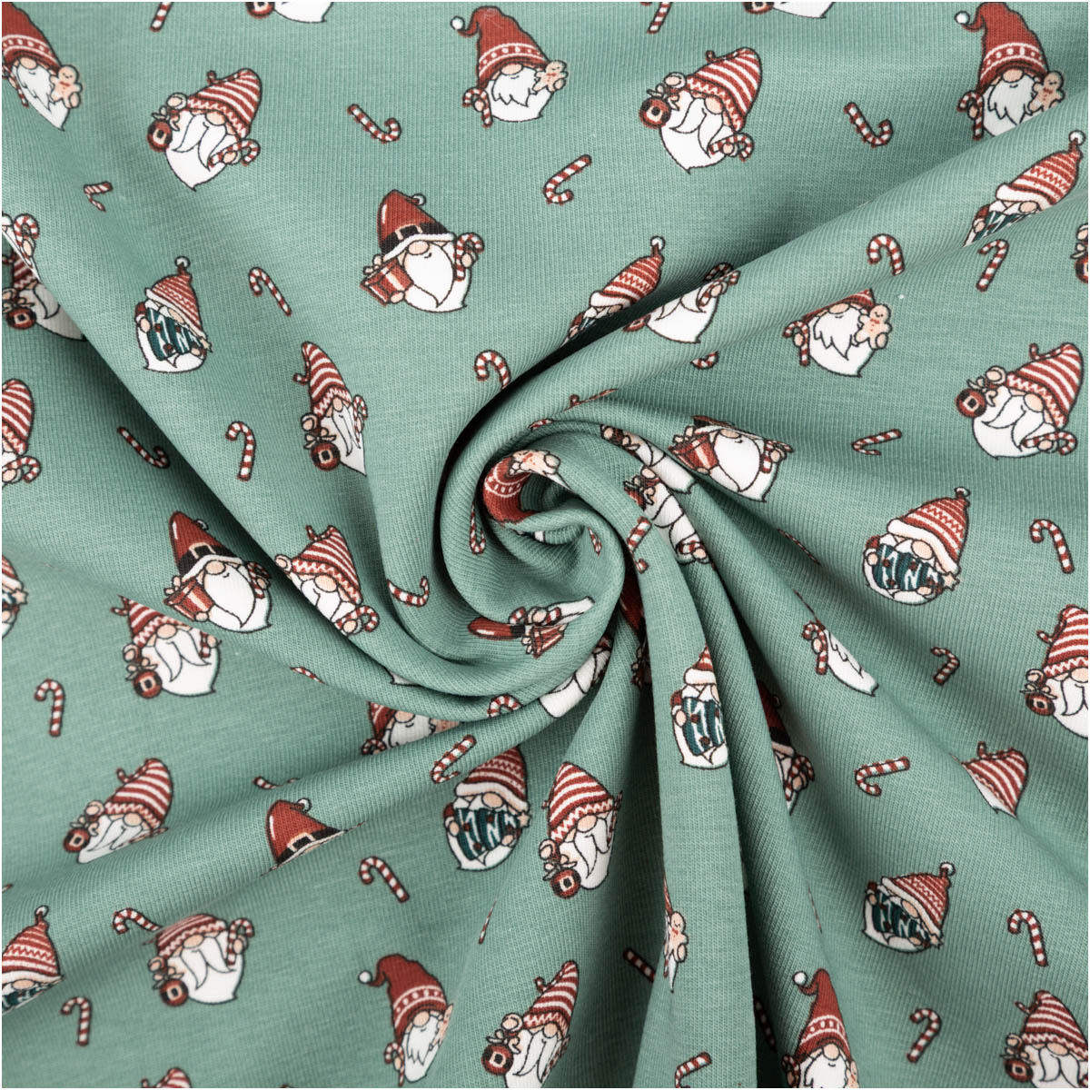 Weicher, elastischer Baumwolljersey in Mintgrün mit Weihnachtswichteln