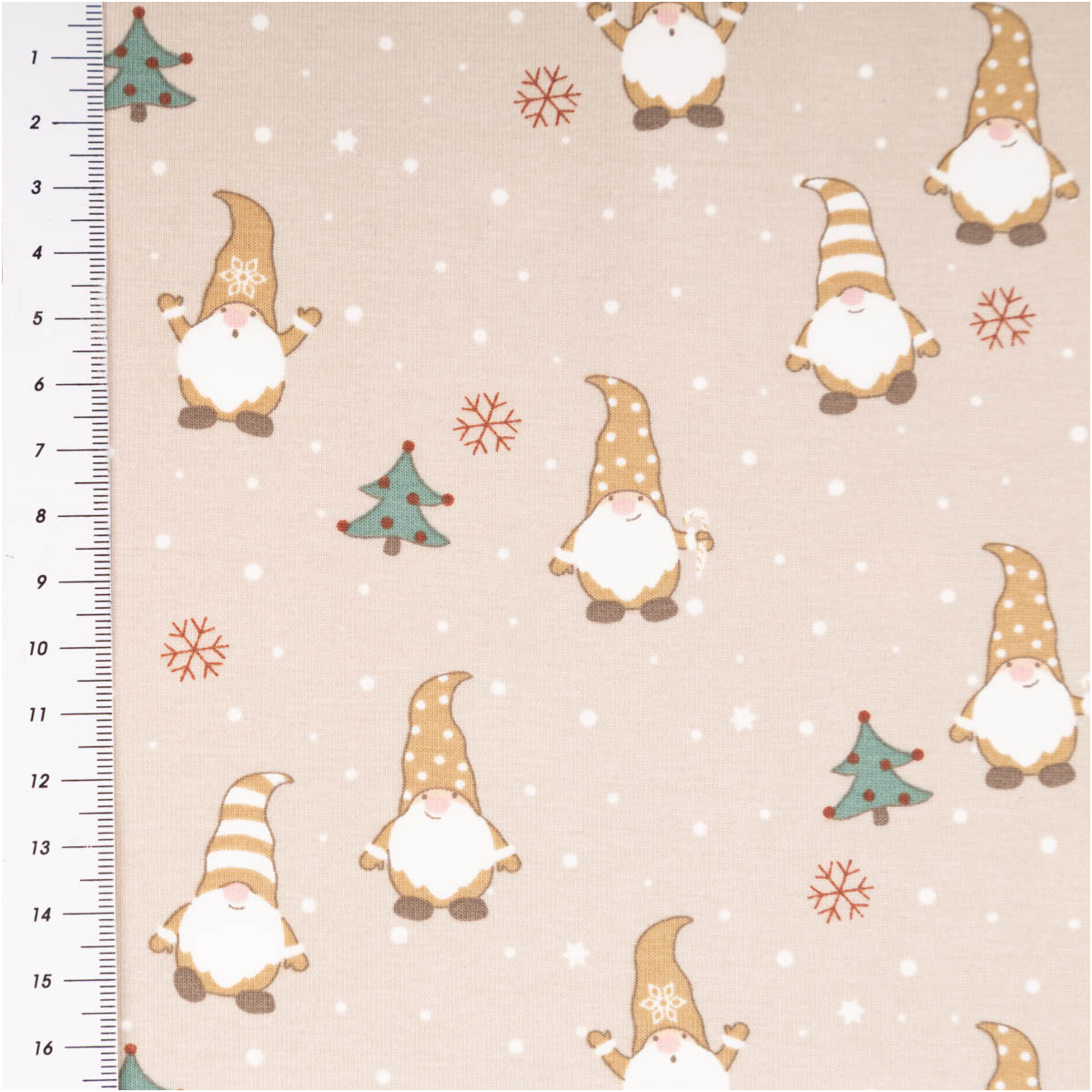 Weicher, elastischer Baumwolljersey mit liebevollem Weihnachtswichtel-Motiv