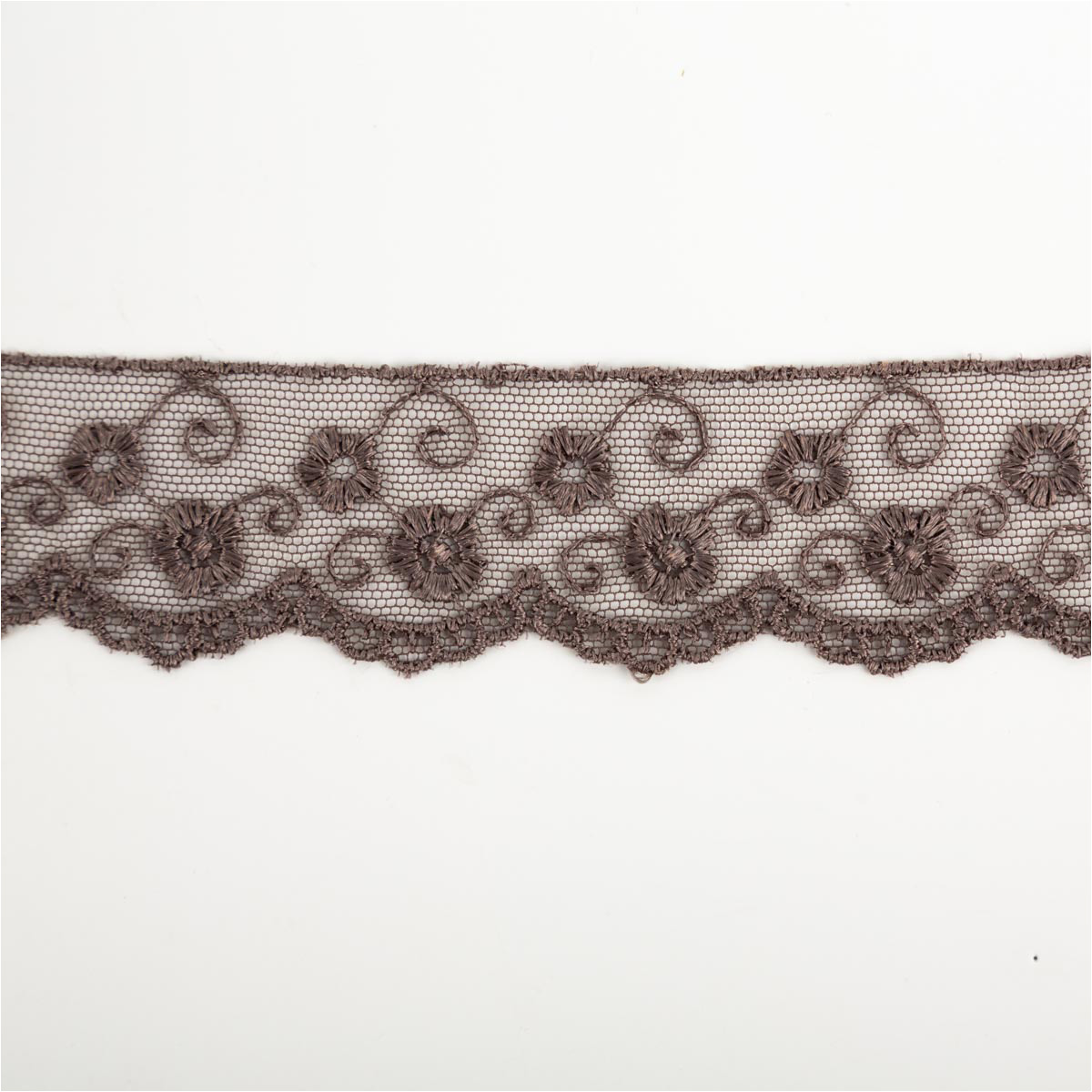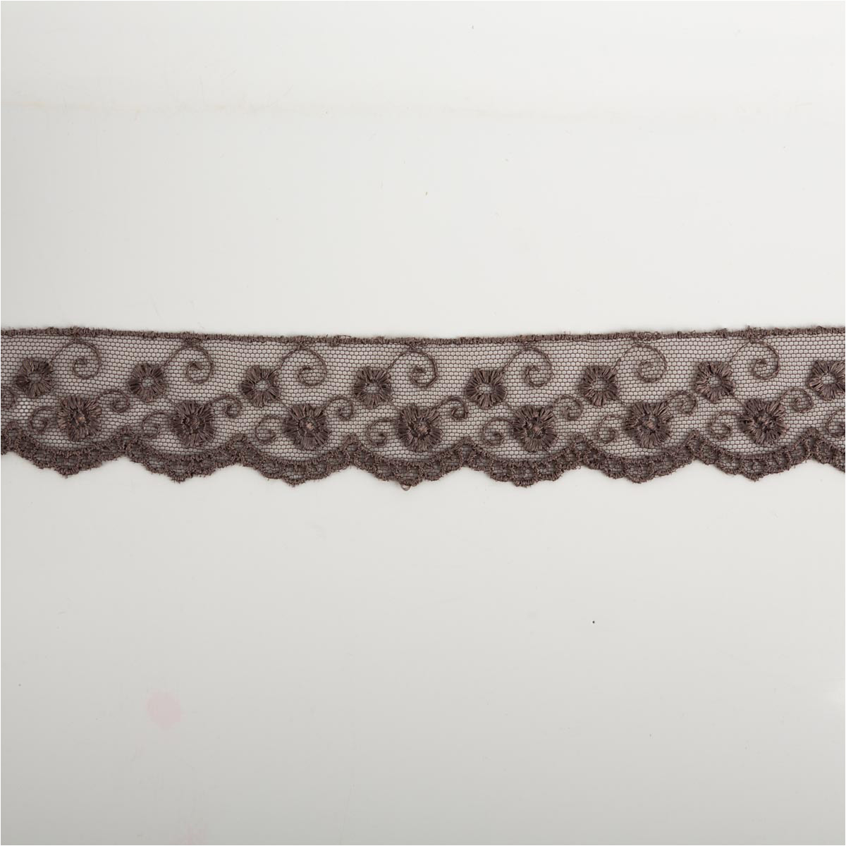 Band Stickerei auf Tüll taupe-grau Breite: 3cm