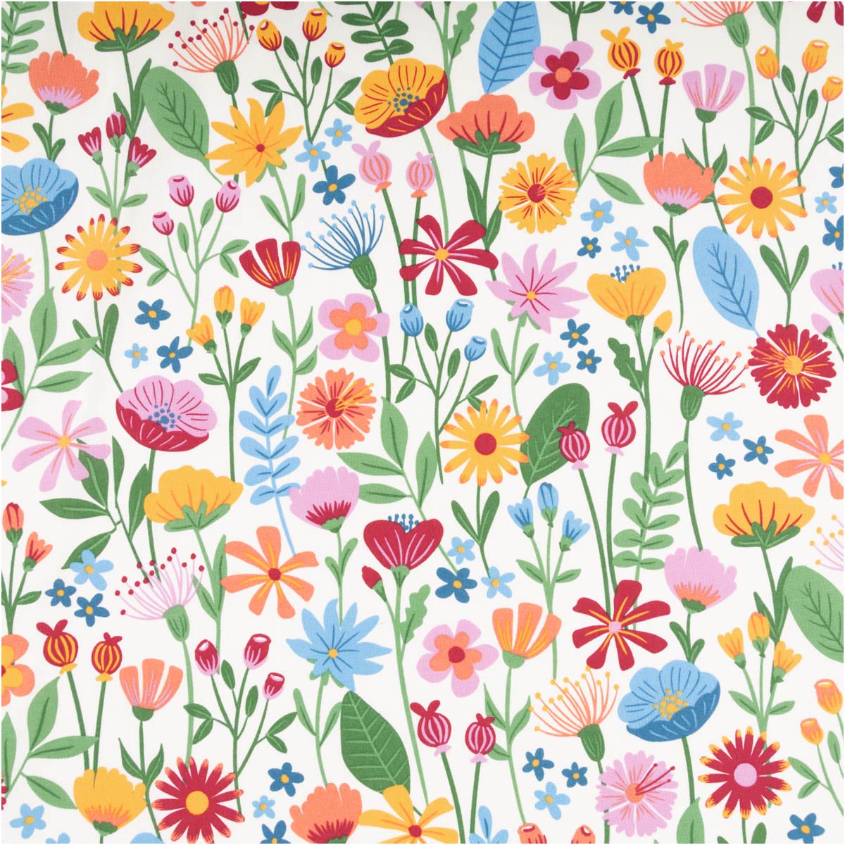 Dekostoff Halbpanama Floral Fiesta Parade – Fröhlicher Blumen-Print auf hochwertigem Baumwollstoff