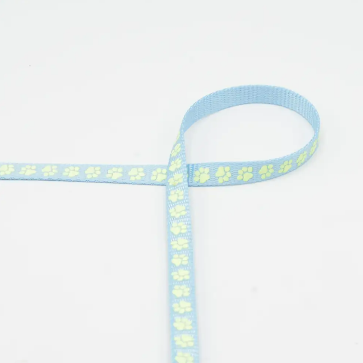 Gurtband Pfoten nachtleuchtend hellblau gelb 10mm Breite