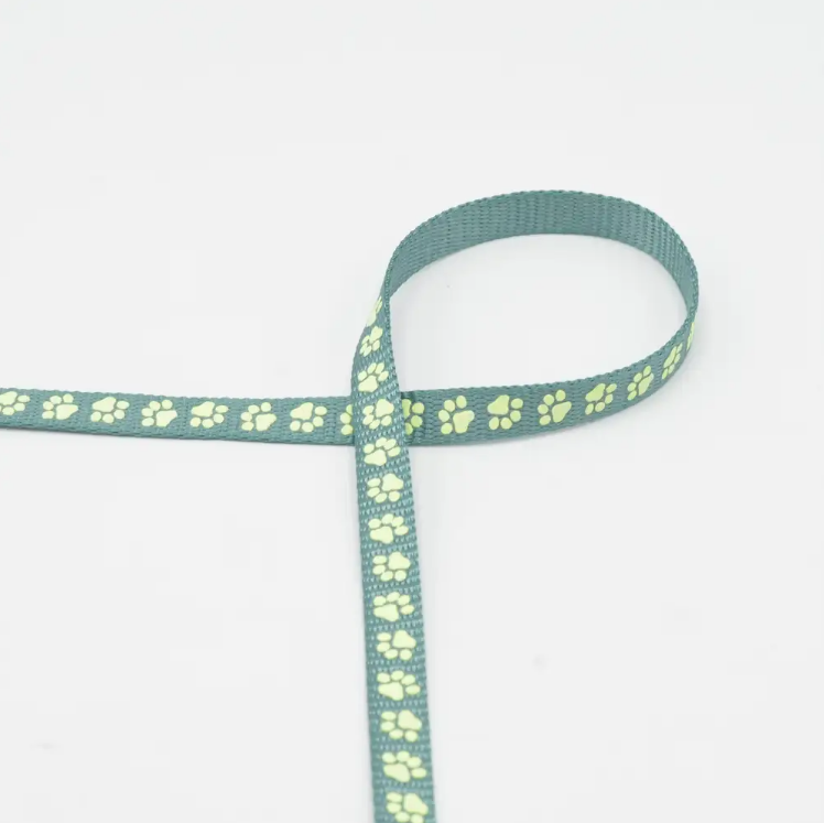 Gurtband Pfoten nachtleuchtend mint gelb 10mm Breite
