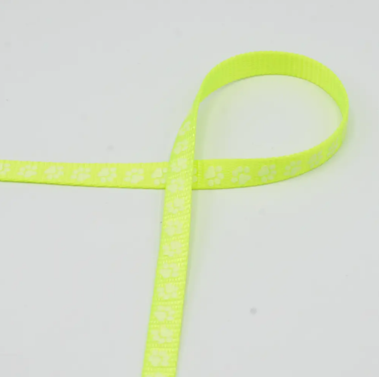 Gurtband Pfoten nachtleuchtend neongelb 10mm Breite