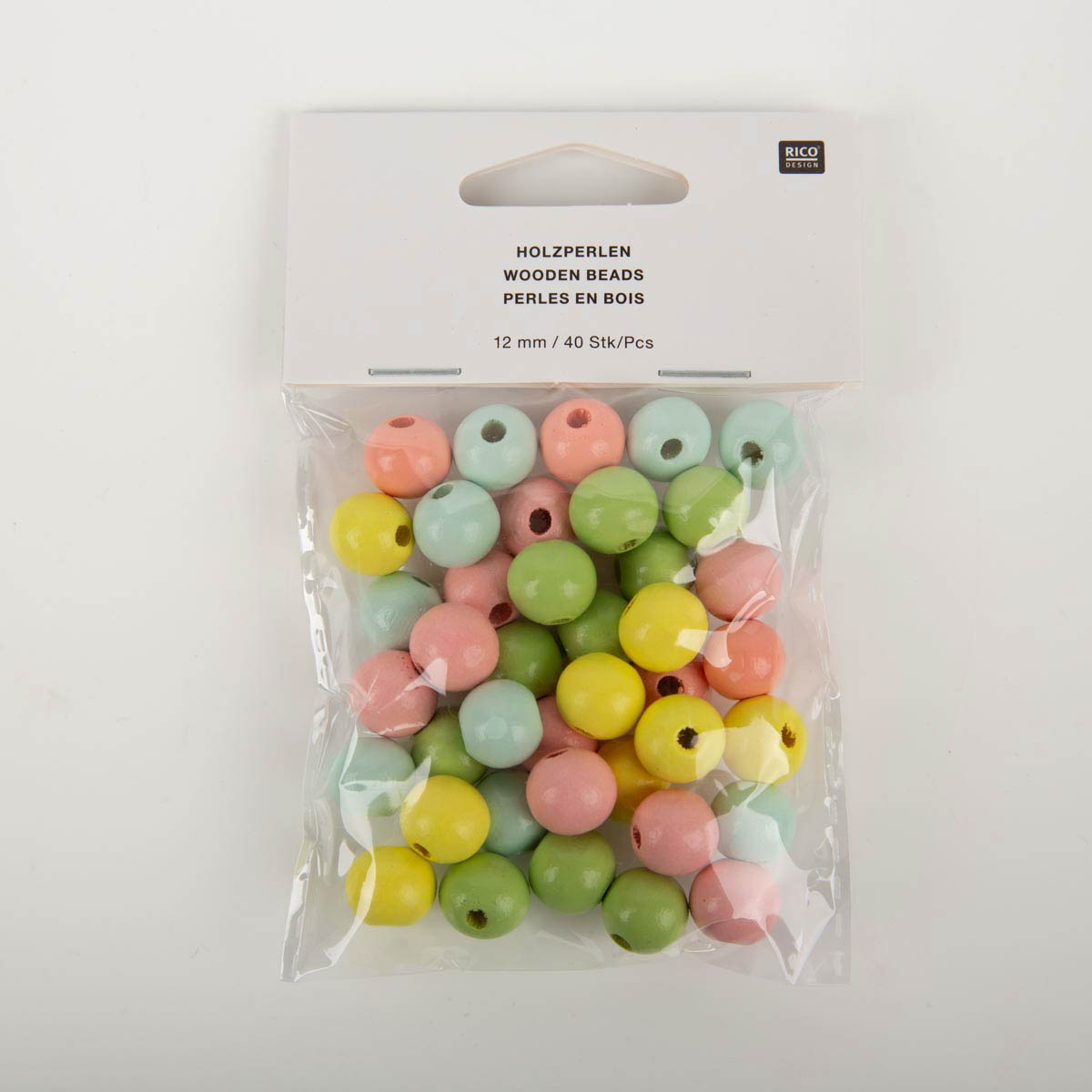 Rico Design Holzperlen 12mm Pastell Mix 40 Stk