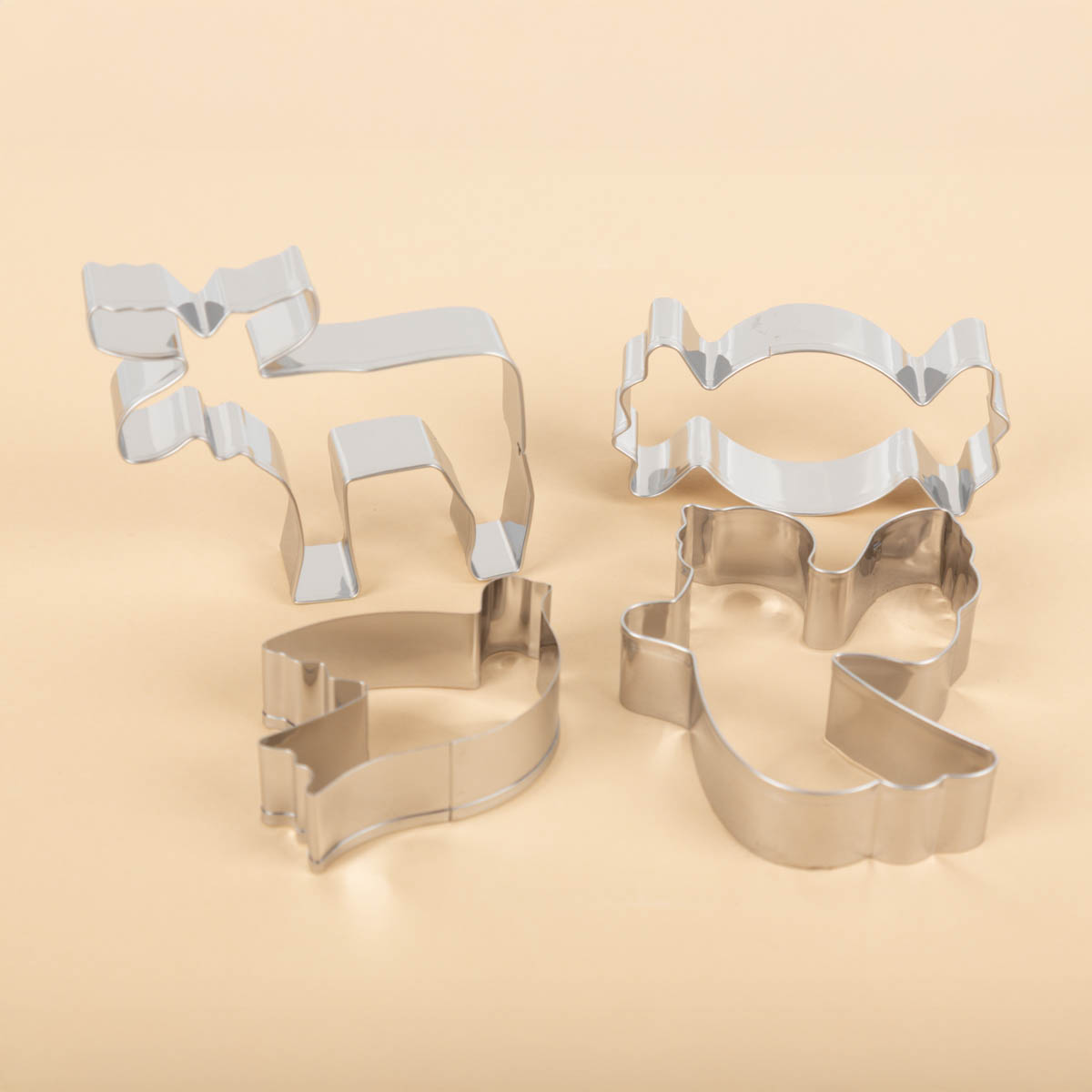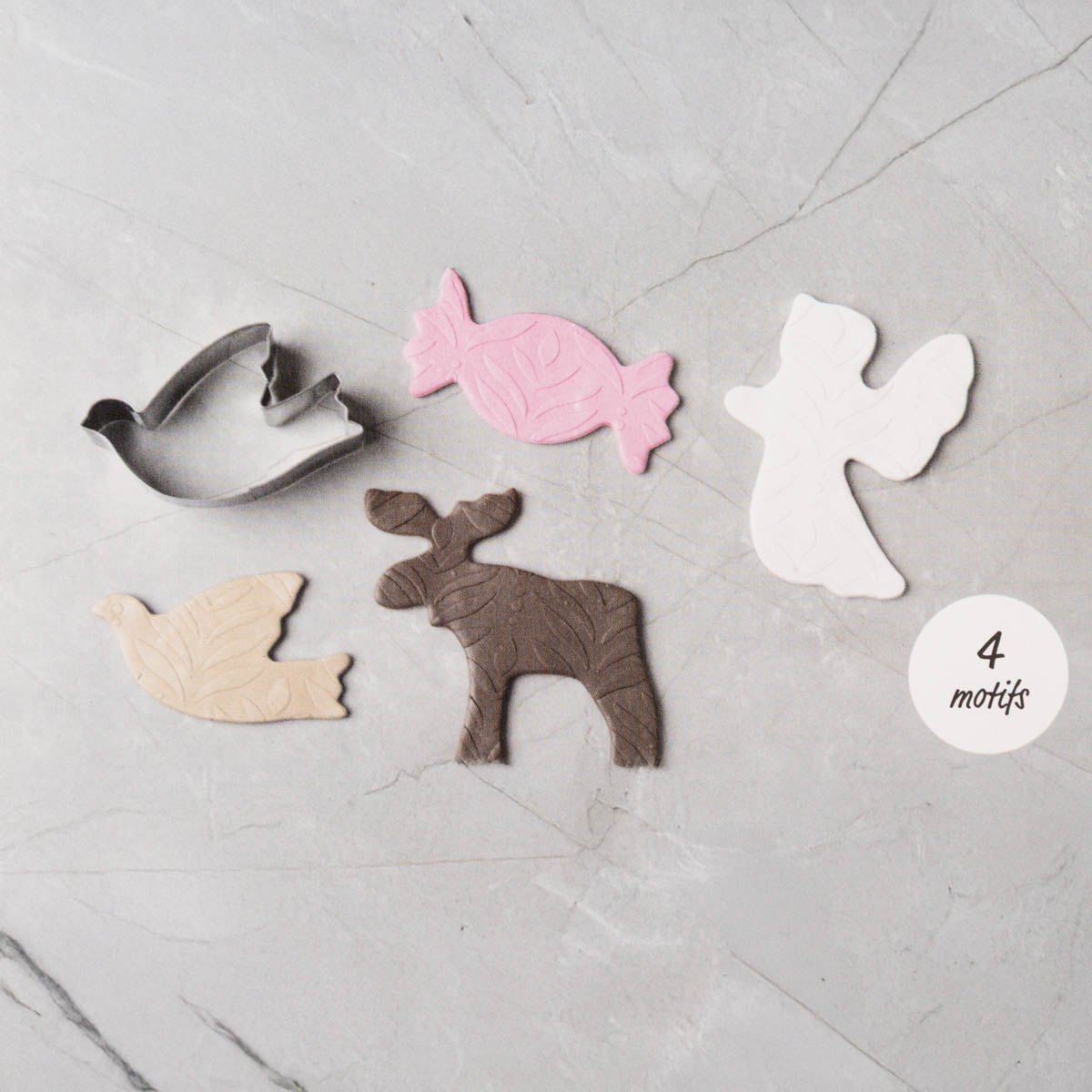Set-Inhalt: 4 Ausstechformen (Engel, Elch, Taube, Bonbon)