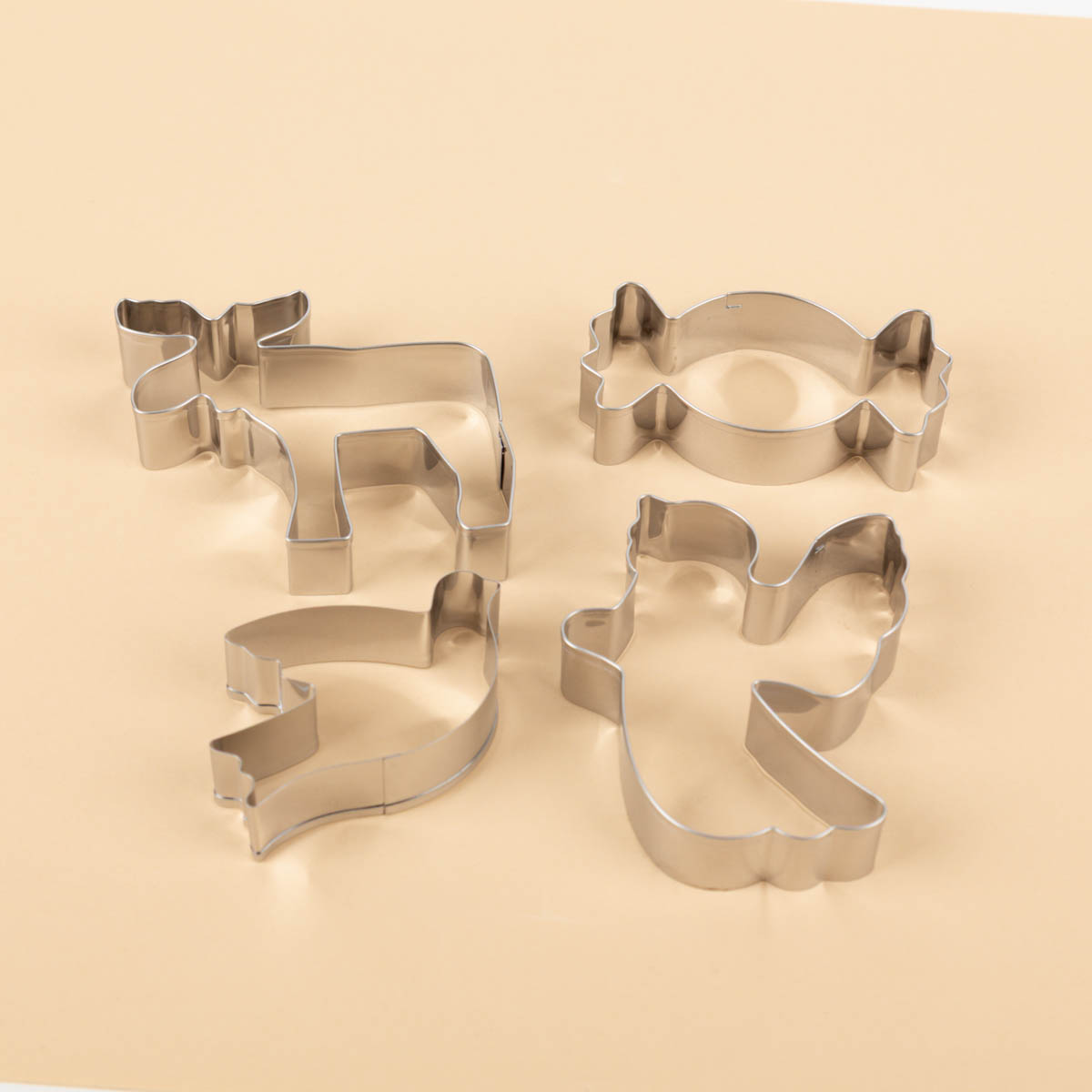 Mit diesem 4-teiligen Set aus Edelstahl-Ausstechern gelingen dir im Handumdrehen weihnachtliche Motive für Plätzchen, Fondant/Marzipan und DIY-Projekte mit Ton, Salzteig oder Knete. Enthaltene Formen: Engel, Elch, Taube, Bonbon.