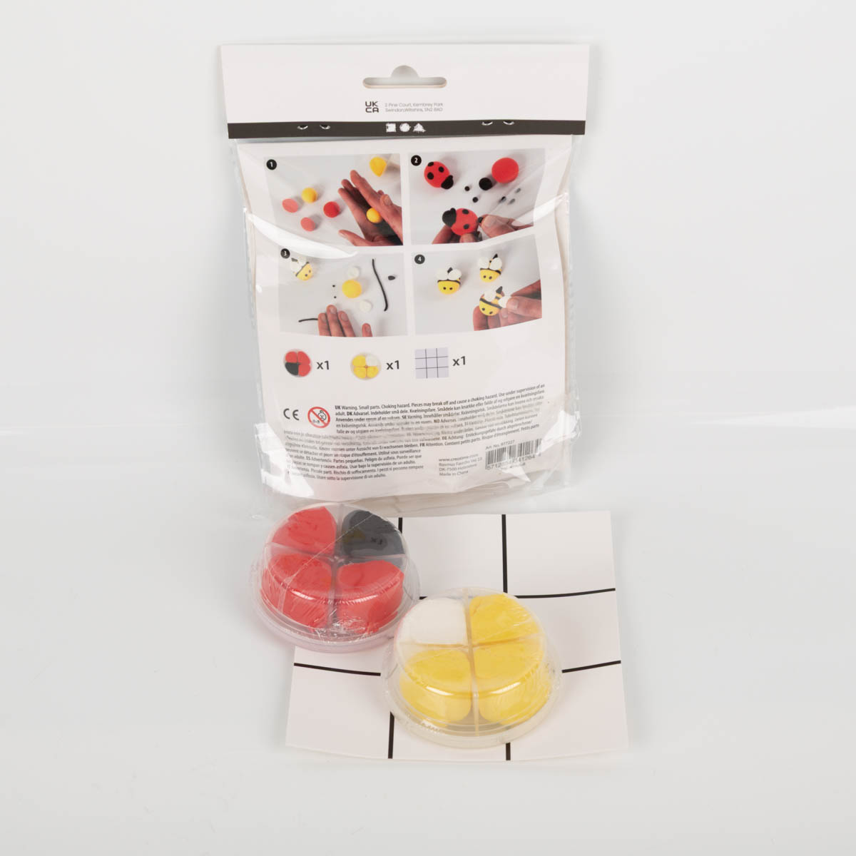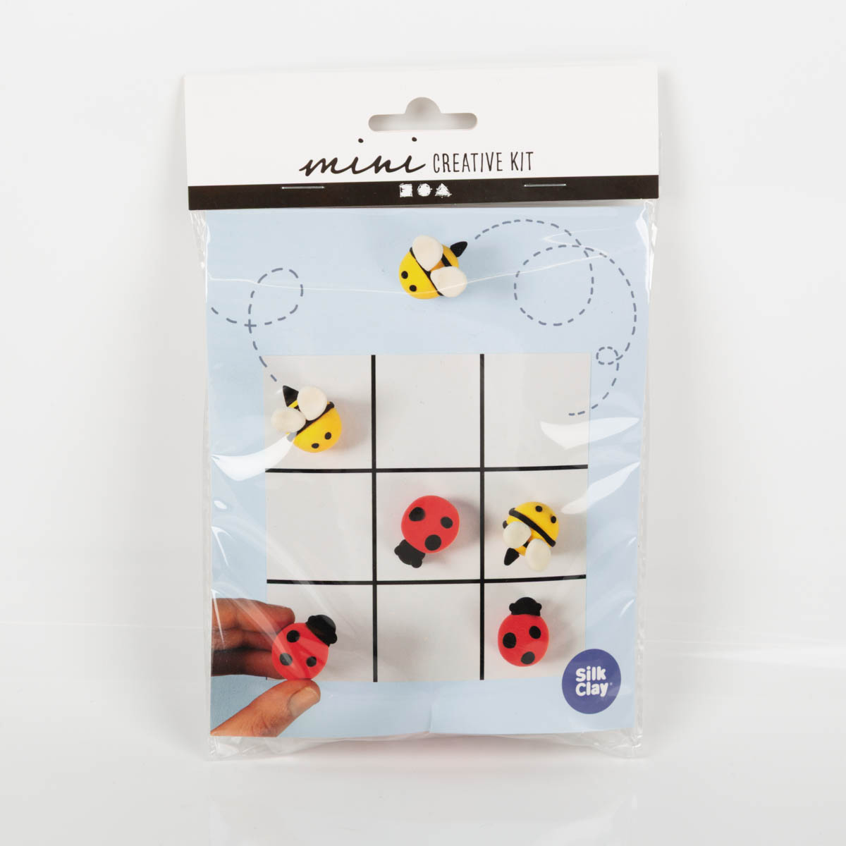 Mit diesem Mini-Set knetest du dein eigenes Tic-Tac-Toe (3-Gewinnt): süße Bienen gegen Marienkäfer, geformt aus weicher Silk Clay Knete. Danach spielst du direkt los – zu Hause, unterwegs oder als Mitbringsel.