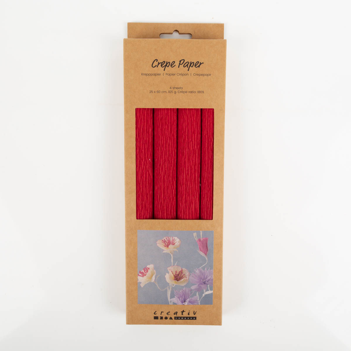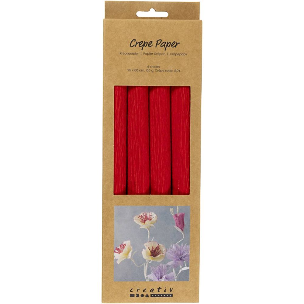 Krepppapier Rot 4 Bögen 25×60 cm, 180 % Krepp – ideal für Papierblumen | Creativ Company