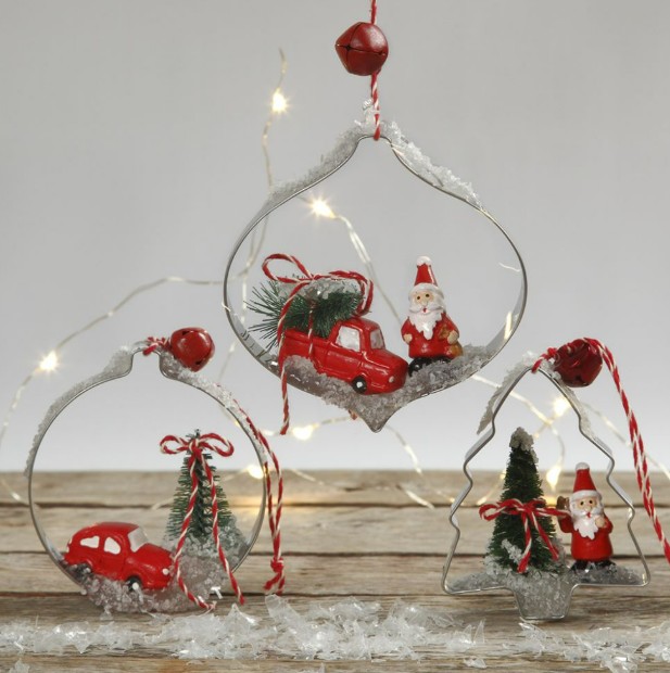 In Metall-Ausstechformen Mini-Szenen arrangieren und aufhängen.