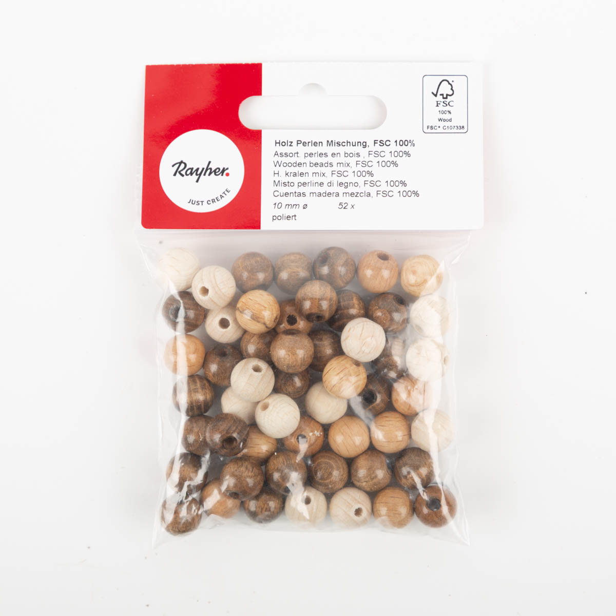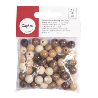 Holz-Perlen poliert 10mm mit Bohrloch 52Stk Mischung – FSC Holz von Rayher