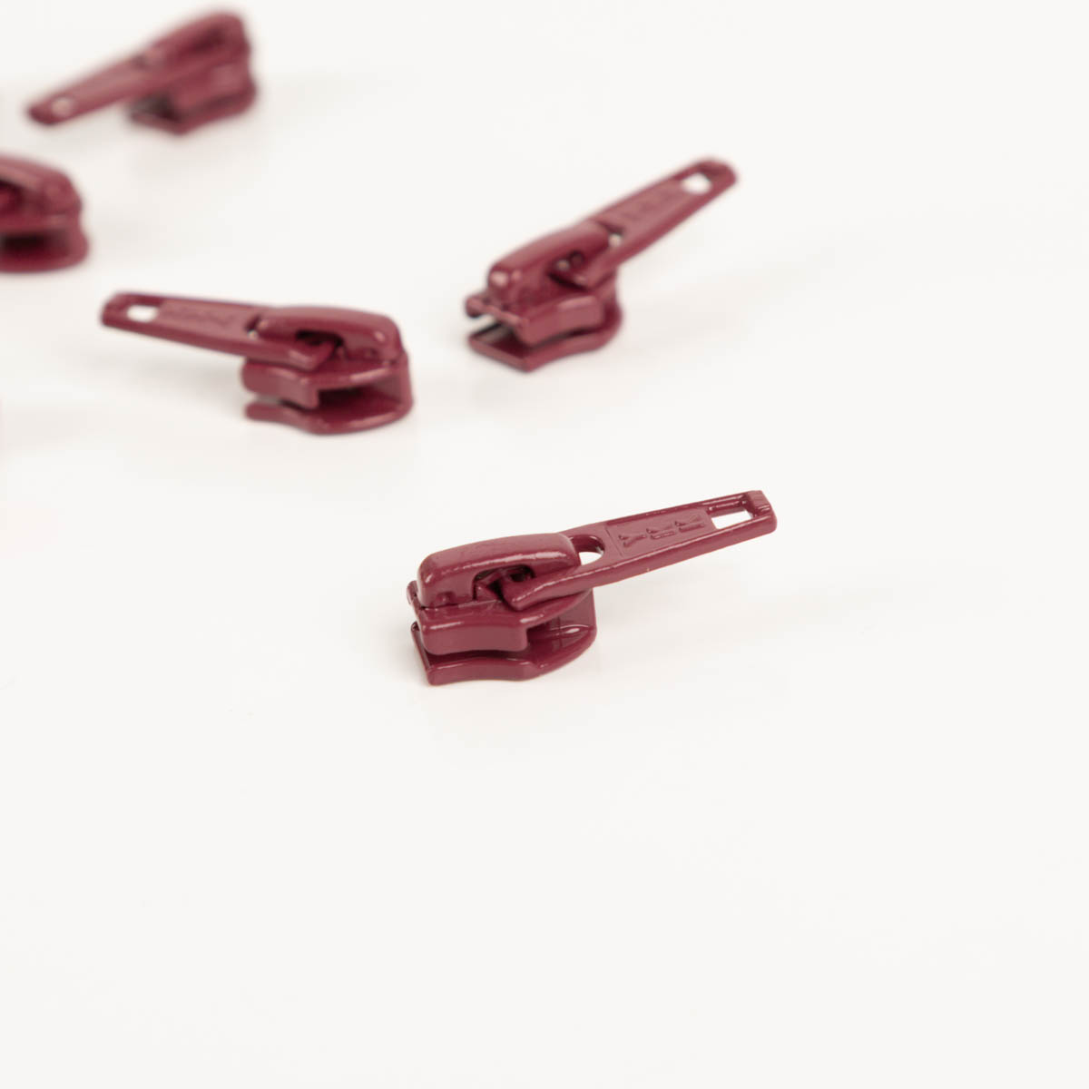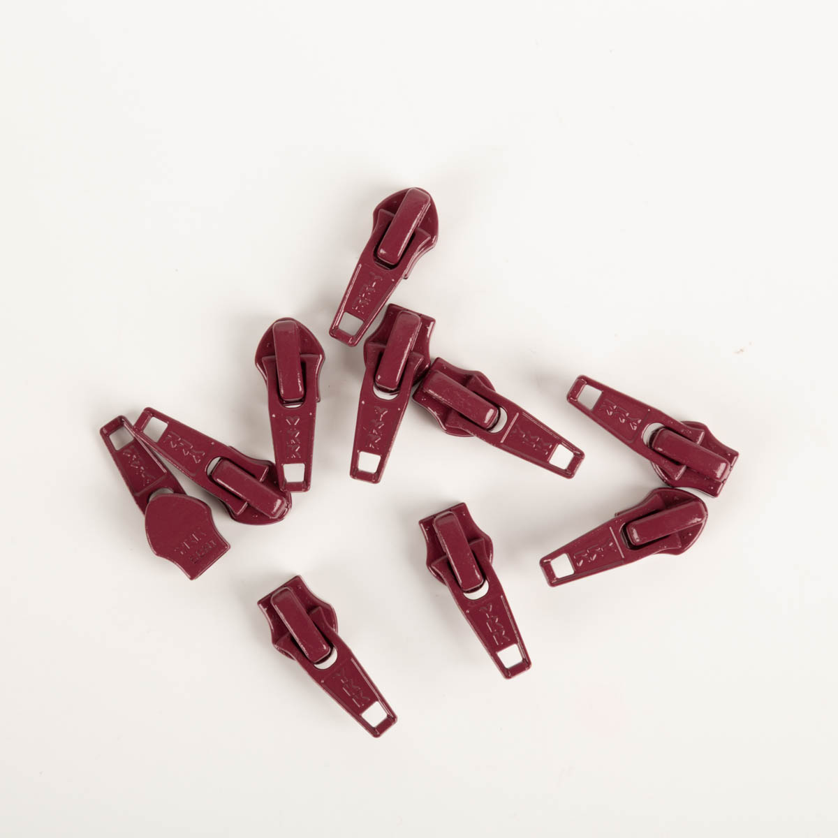 Lackierte Zipper bzw. Schieber aus Metall in Dunkelrot