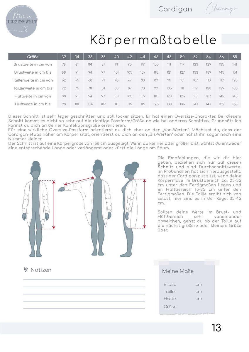 Schnittmuster für einen Cardigan für Damen – "meine Chicago" von Meine Herzenswelt in den Größen 32-58