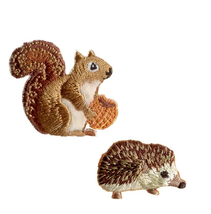 Bestickte Applikationen mit Igel- und Eichhörnchenmotiv