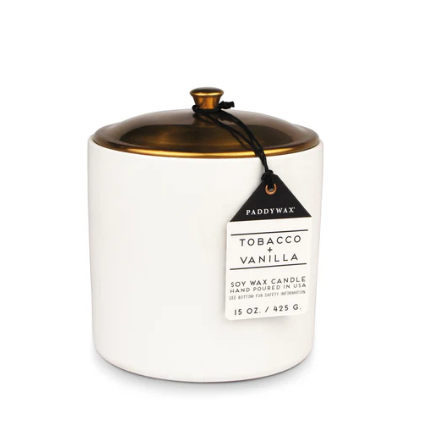 Duftkerze Sojakerze Hygge White Tobacco & Vanilla 425g mit 3 Dochten im Keramiktopf mit Metalldeckel von Paddywax