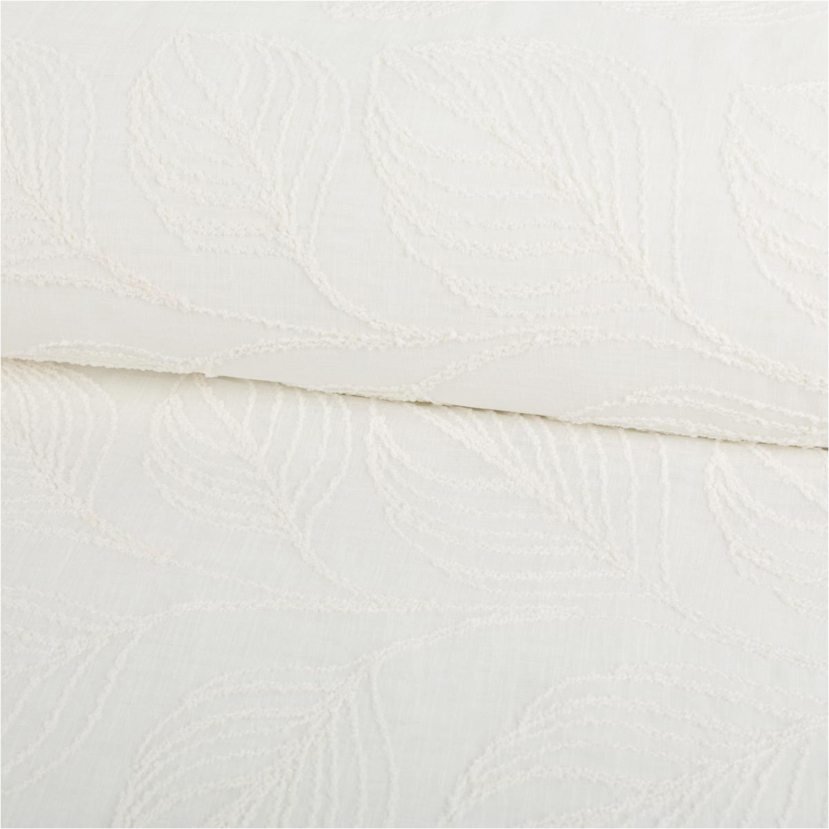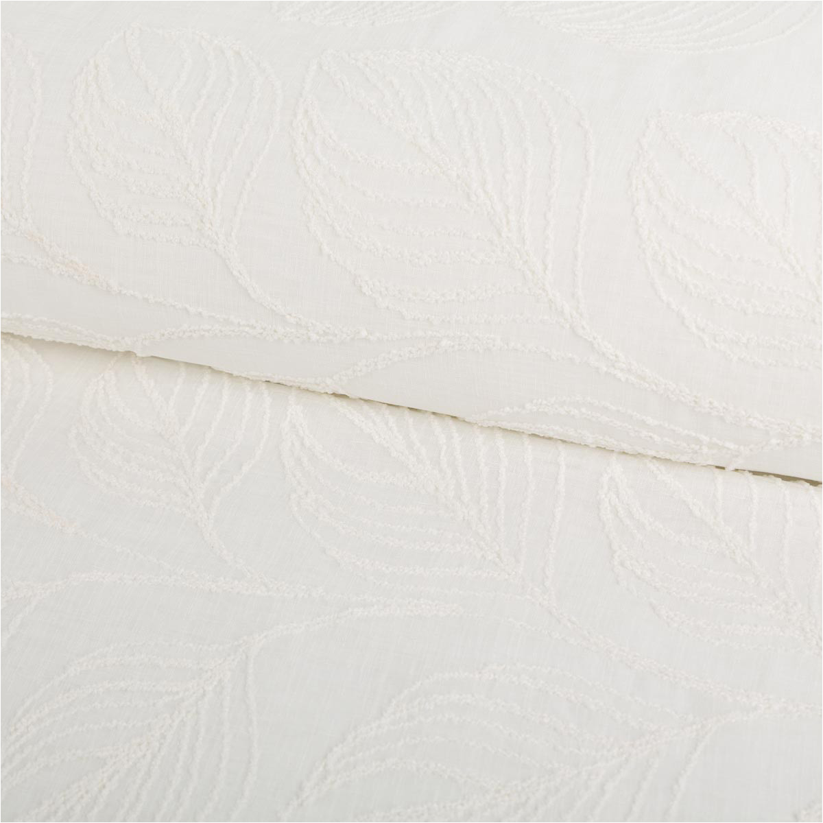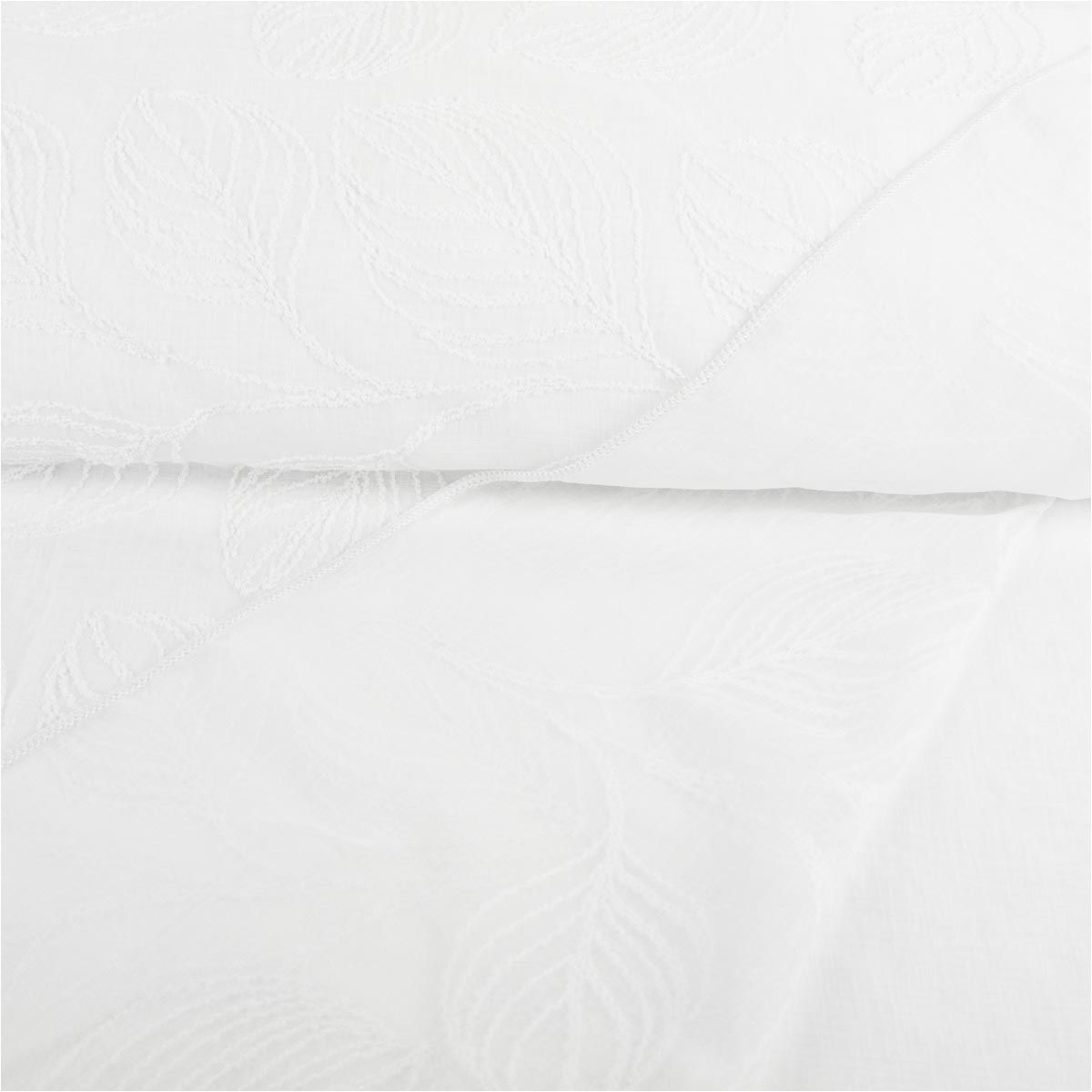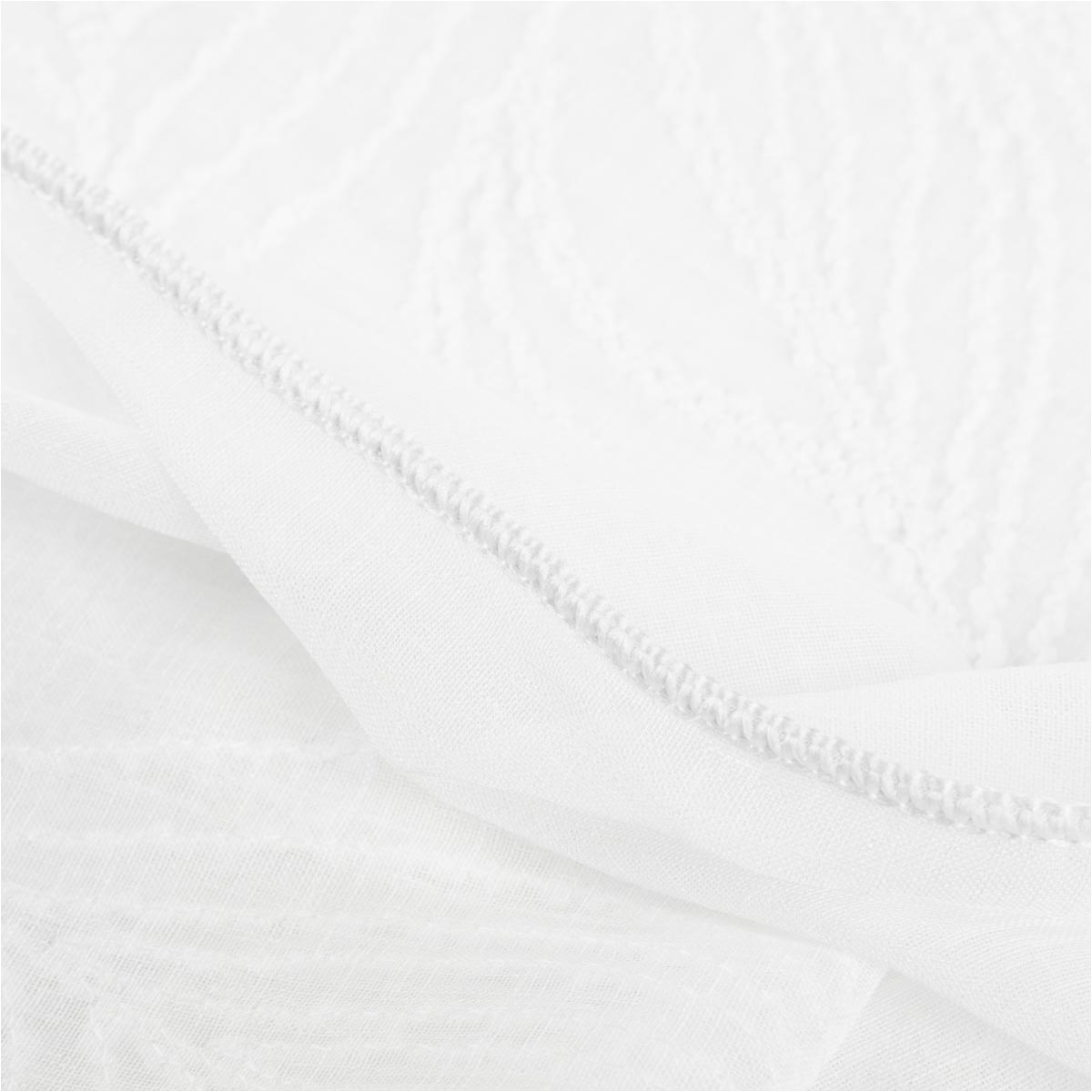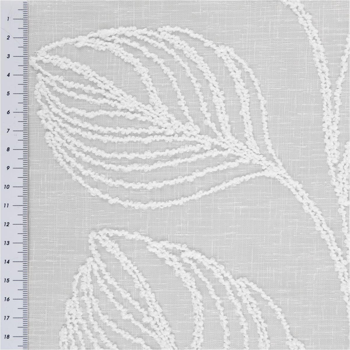 Transparenter Gardinenstoff in wollweißer Leinenstruktur mit rustikaler Bouclé-Blätter-Stickerei