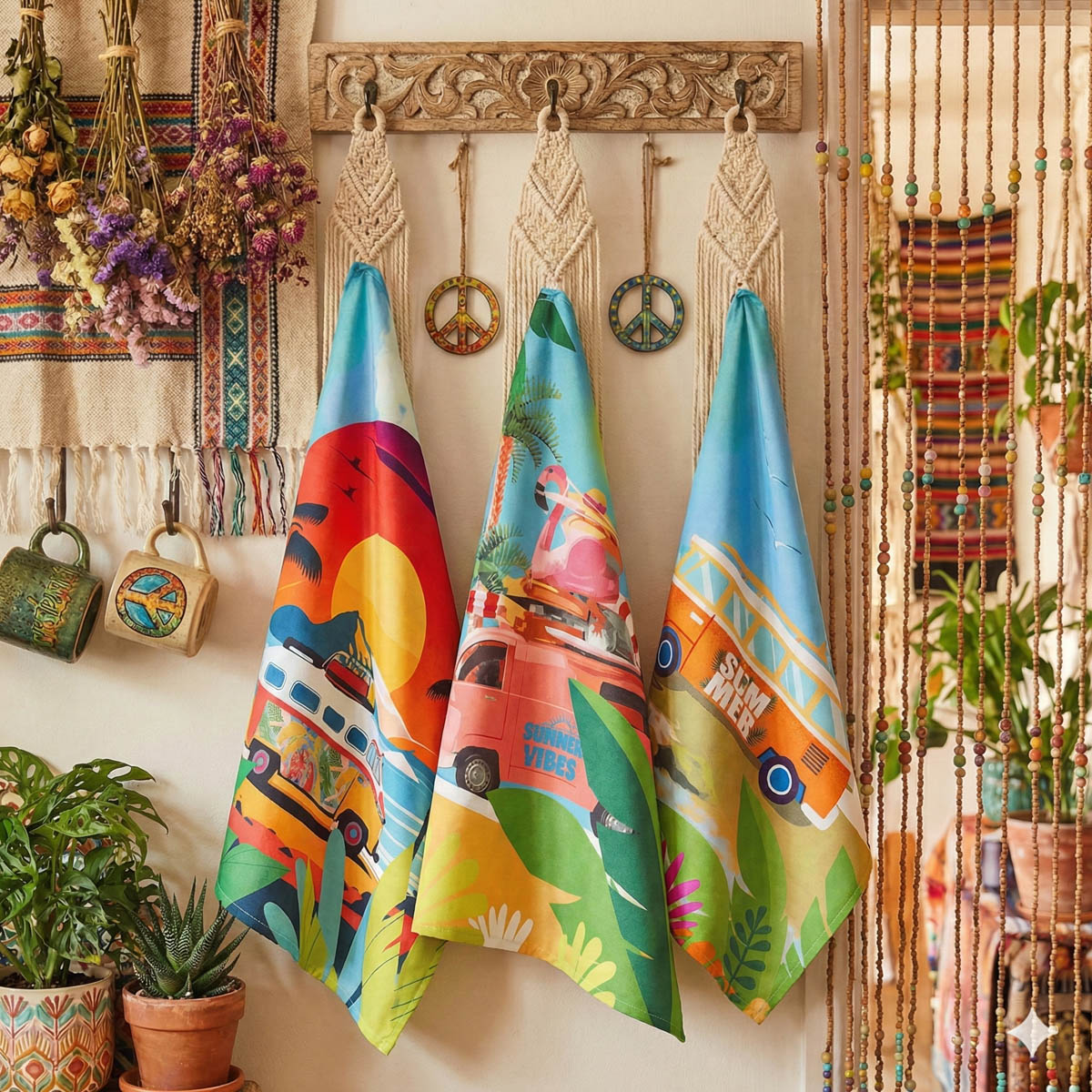 Das Set umfasst drei unterschiedliche, aber perfekt aufeinander abgestimmte Camper-Designs im Format 50 × 70 cm. So hast du immer ein frisches Tuch zur Hand – funktional und dekorativ zugleich.