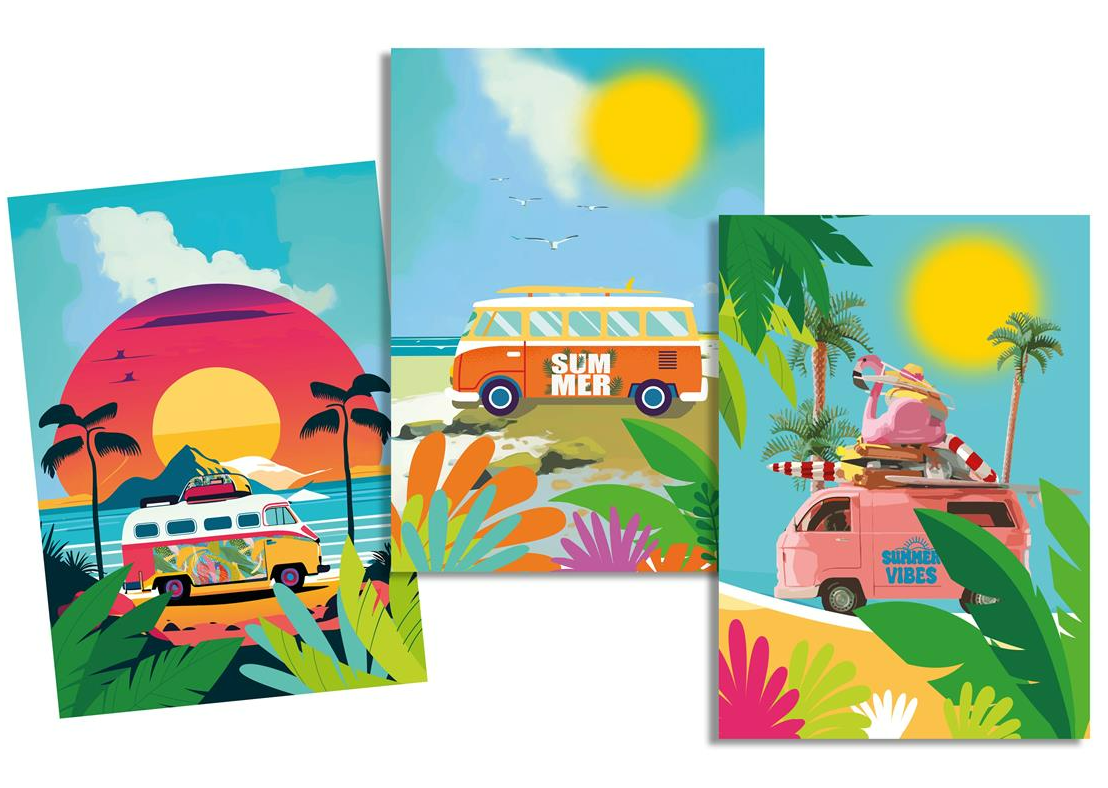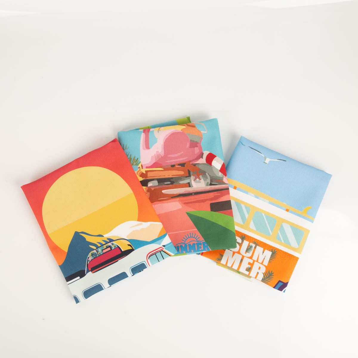 3er Set Geschirrtücher mit farbenfrohen Camper-Motiven im Sommerstil