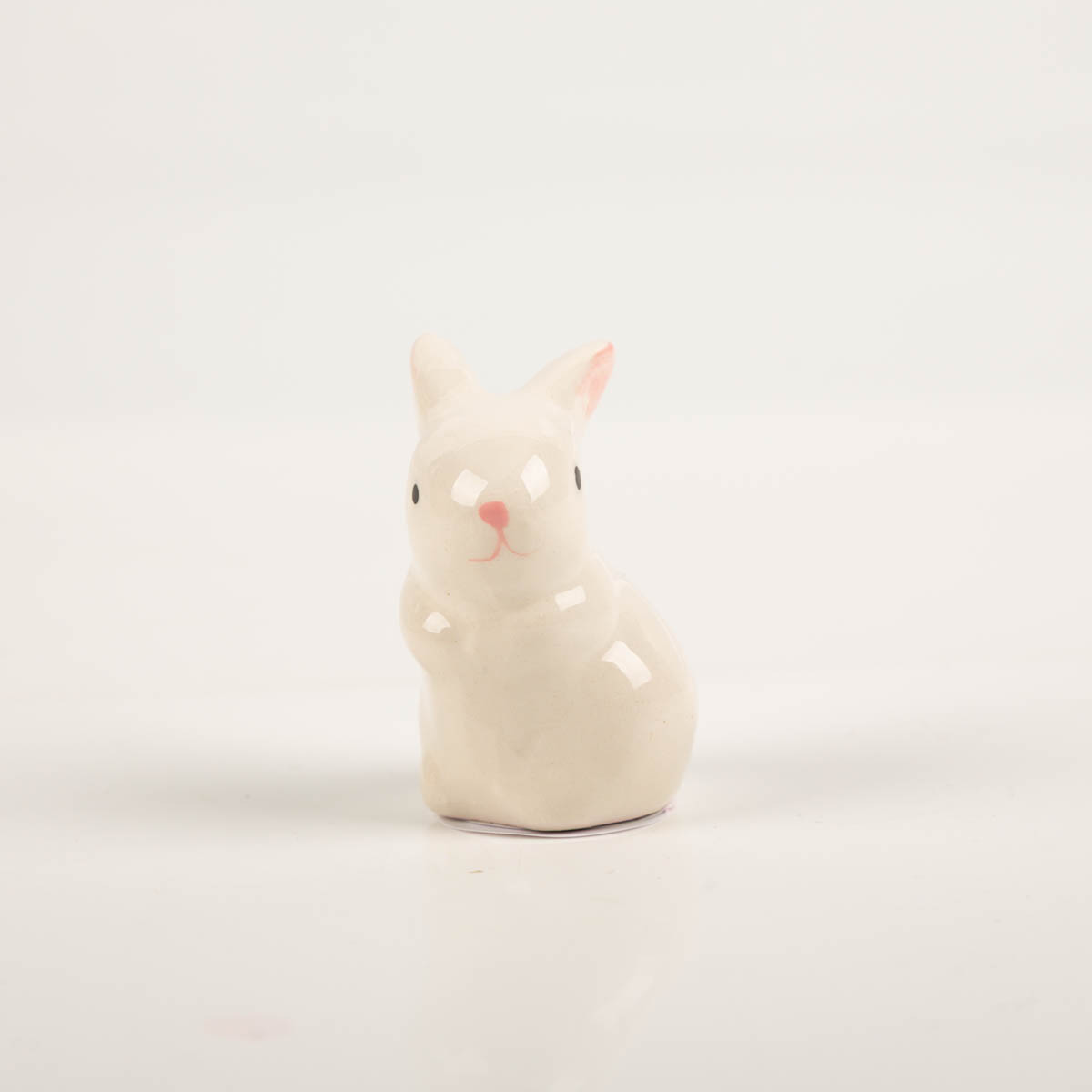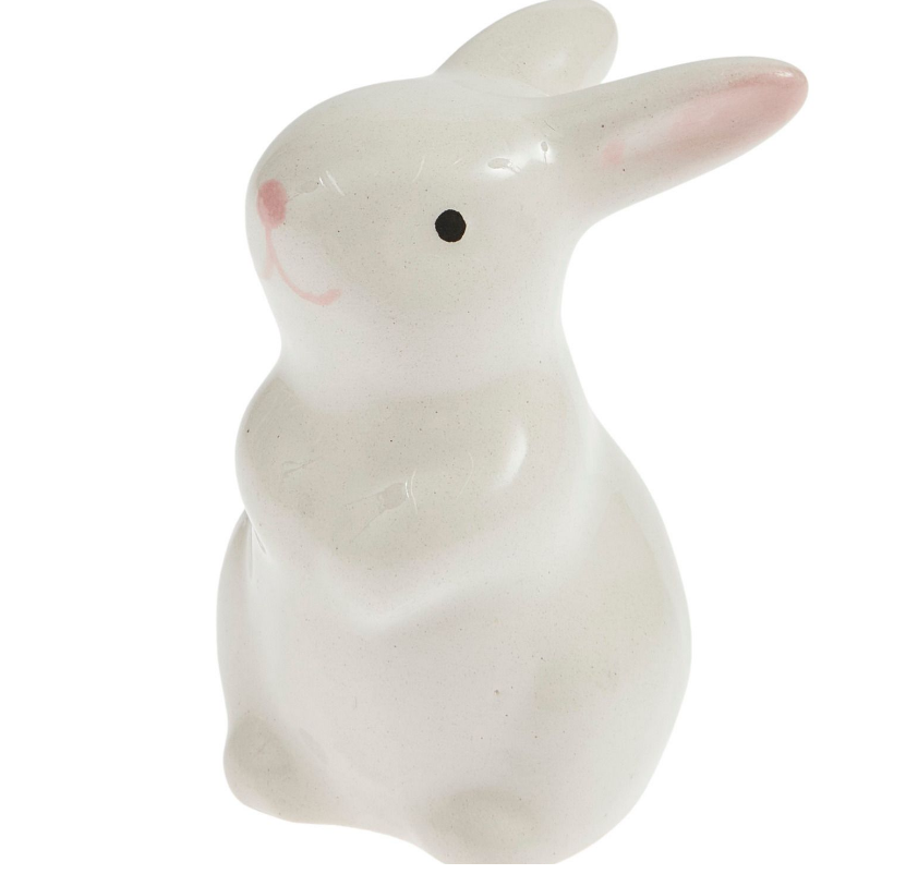 Kleine Keramikfigur: Hase in Weiß, stehend links, ideal als feiner Akzent für Oster- und Frühlingsdeko