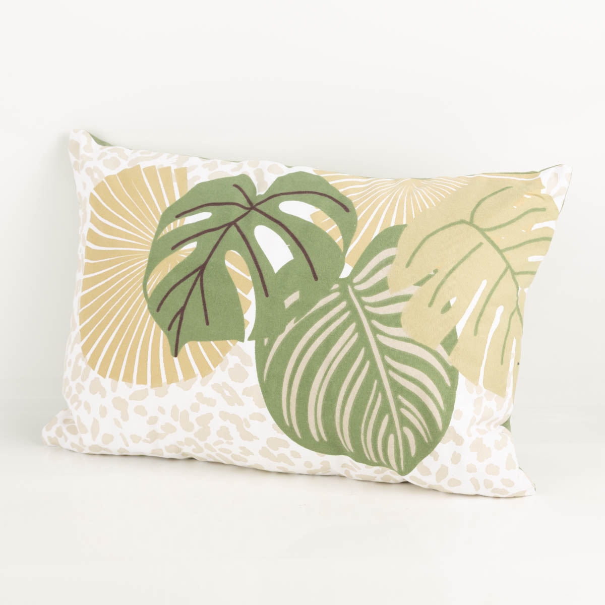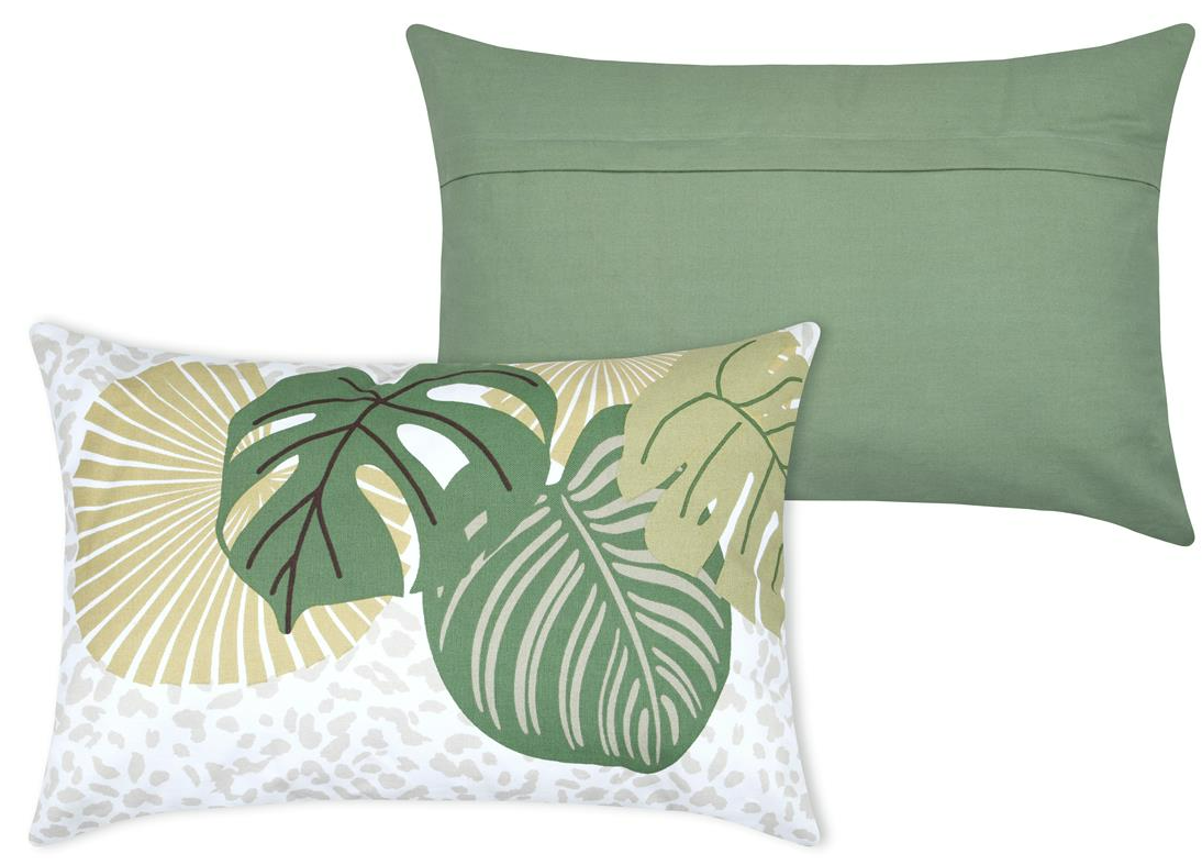 Dekokissen Monstera-Blätter Baumwolle weiß grün 40x60 cm