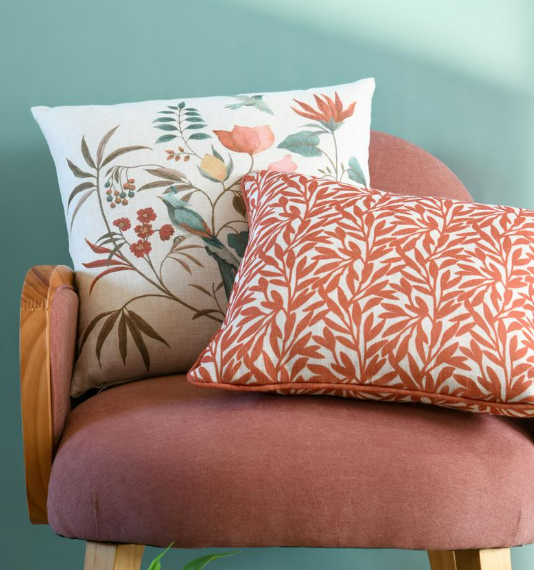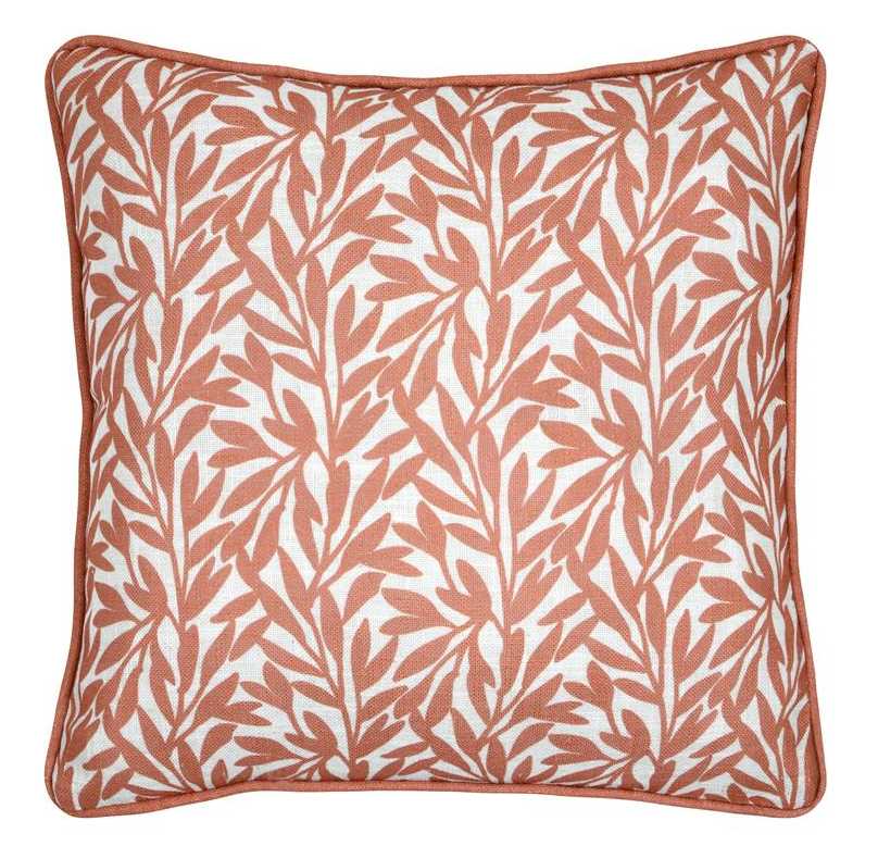 Der Stoff mit 10 % Leinenanteil verleiht dem Kissen eine sicht- und fühlbare Leinenstruktur. Dadurch wirkt das Kissen besonders natürlich und hochwertig. Das Blätterdessin ist auf beiden Seiten identisch gestaltet und sorgt für ein stimmiges Gesamtbild – ideal für Sofa, Sessel oder Bett.