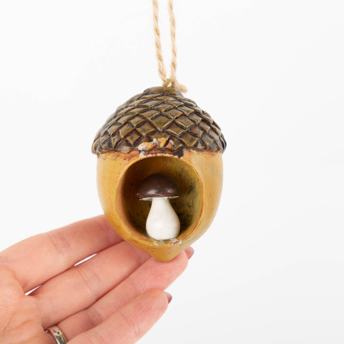 Detailreicher Dekoanhänger in Form einer Eichel mit Pilz
