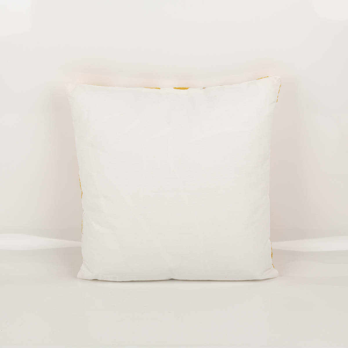 Dekokissen 45 x 45 cm in Wollweiß mit abstraktem Blumenmotiv in Beige und Gelb für freundliche Wohnakzente auf Sofa, Sessel oder Bett