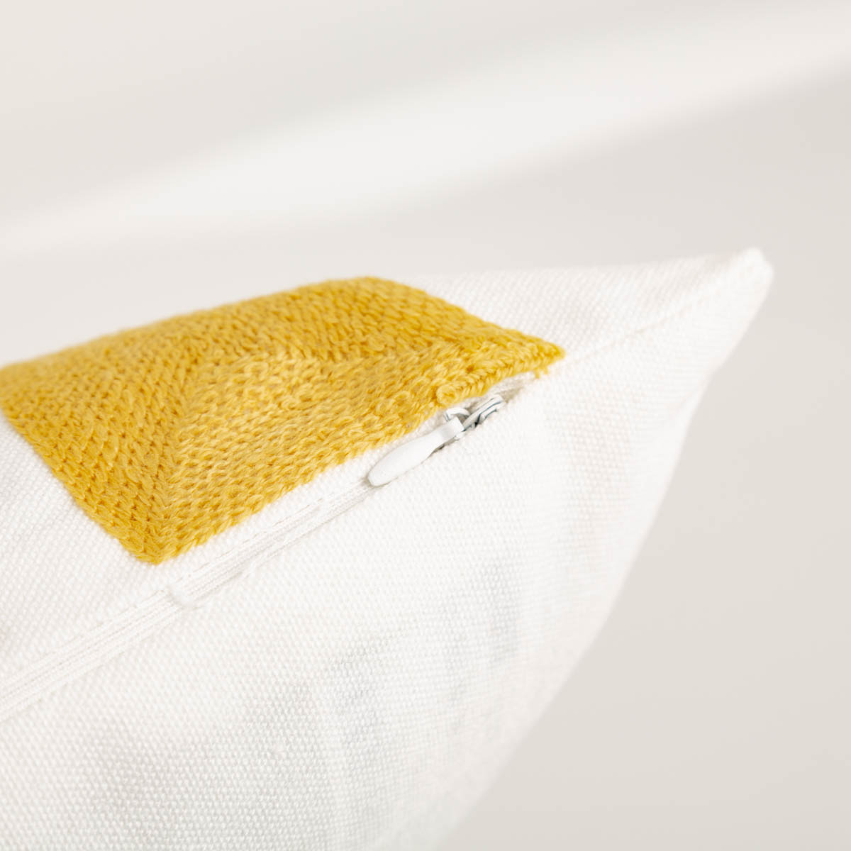 Die Kombination aus hellen Naturtönen und sonnigem Gelb bringt Leichtigkeit und Wärme auf Sofa, Sessel oder Bett. Gerade in Wohnräumen mit natürlichen Materialien und sanften Farben kommt das Kissen besonders schön zur Geltung.