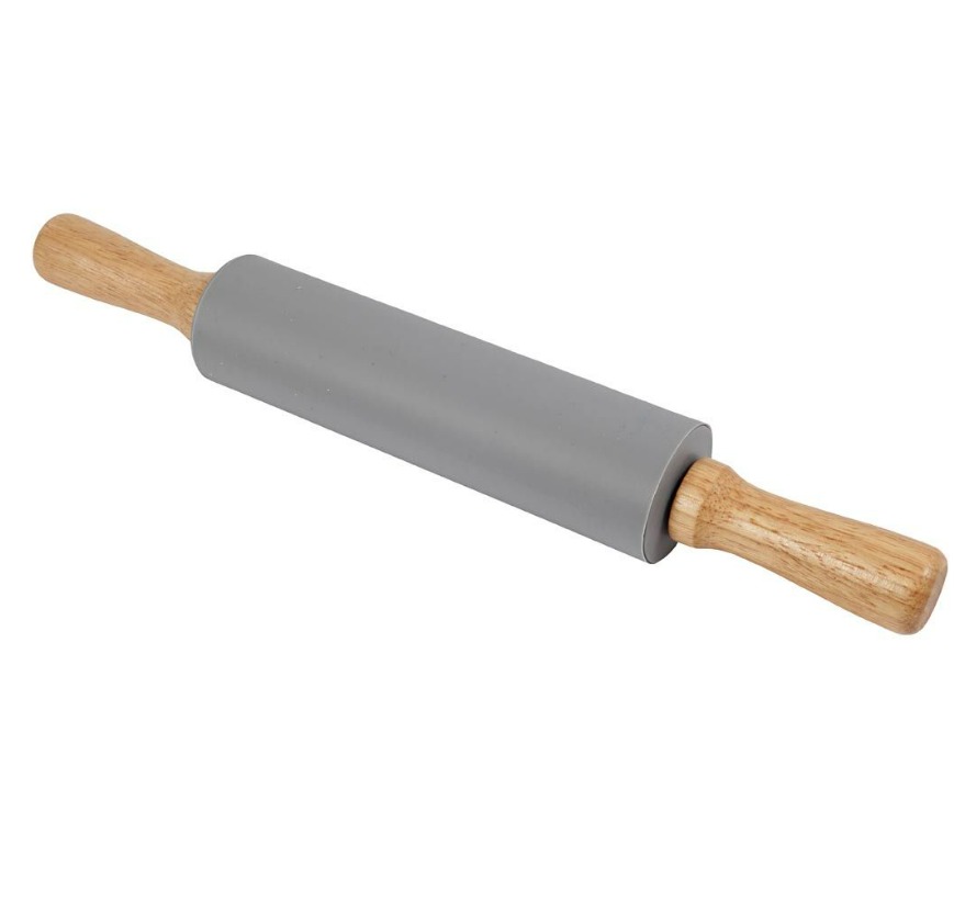 Teigrolle Silikon Holzgriffe 38x5,5cm grau natur von Creativ Company
