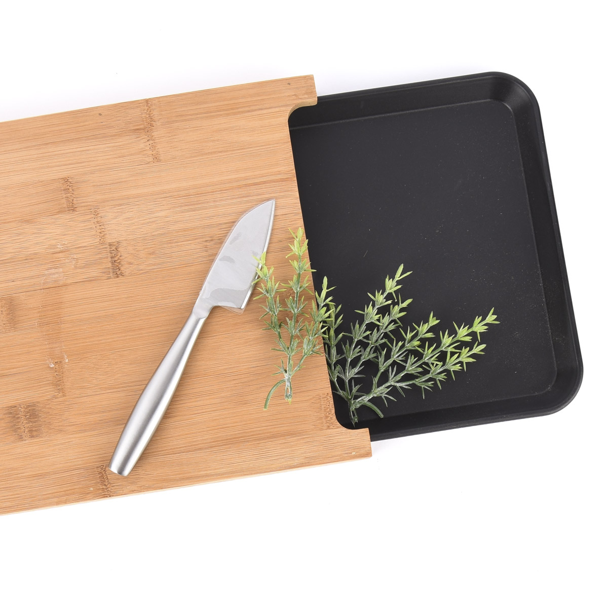 Schneidbrett aus Bambus mit ausziehbarer Auffangschale - perfekt zum Schnibbeln von Gemüse und Co.!