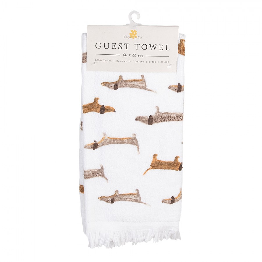 Gästehandtuch von Clayre & Eef in Weiß und Braun mit liebevollem Hundemotiv, ideal für Badezimmer, Gäste-WC oder Küche