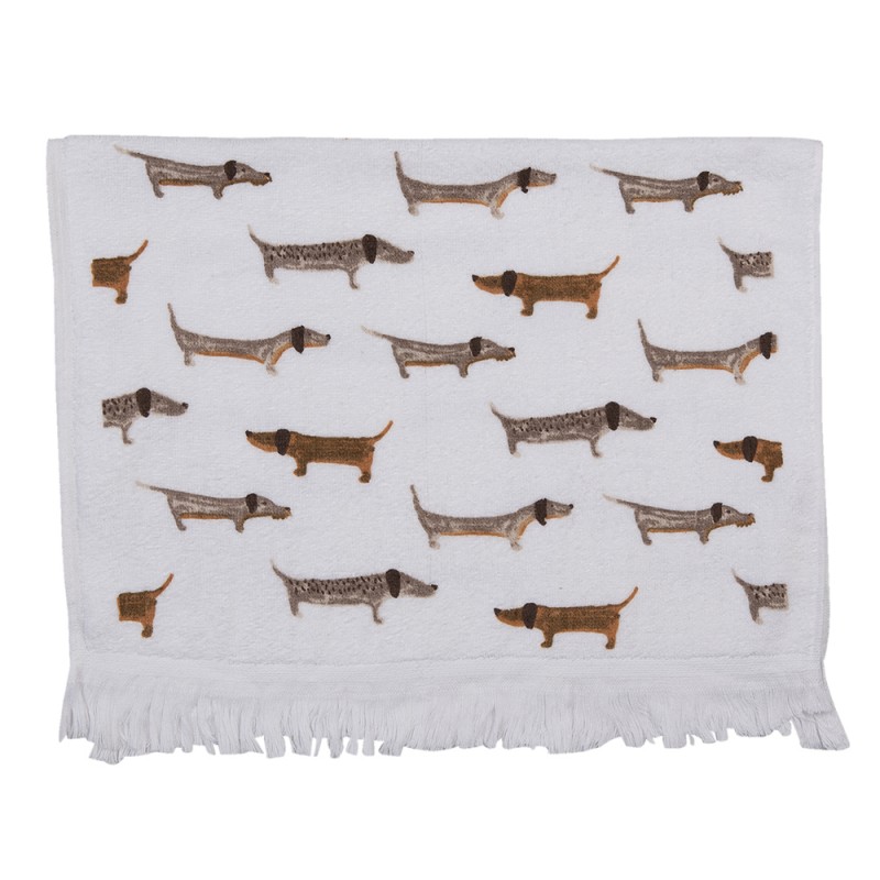 Clayre & Eef Gästehandtuch Küchentuch Hunde Baumwolle weiß braun 40x66cm