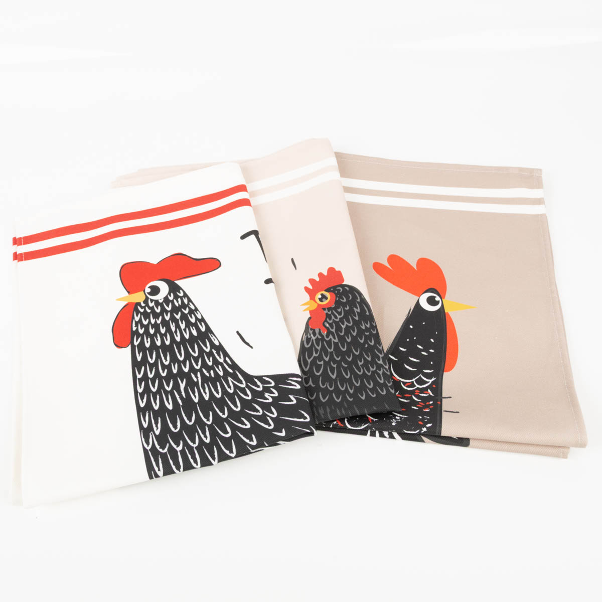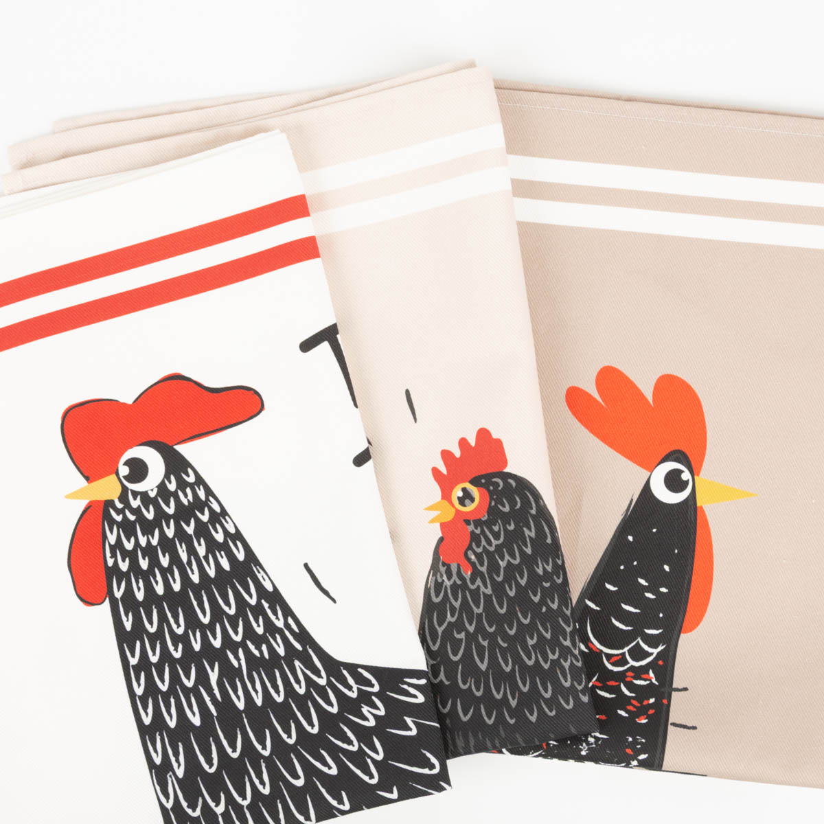 Geschirrtuch-Set „Poulette“ – 3er Set mit Hühner-Motiv (50x70 cm, 100 % Baumwolle)