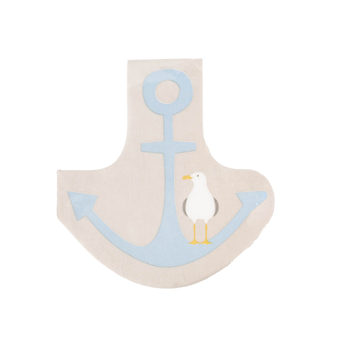 Maritime Deko leicht gemacht: Diese Motivservietten in Ankerform mit kleiner Möwe sind die perfekte Ergänzung für Strandparty, Gartenfest oder Geburtstagskaffee. Weiches, 3-lagiges FSC®-Papier – hübsch und praktisch.