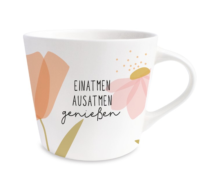 Gönn dir eine kleine Auszeit – mit dieser liebevoll gestalteten Espresso Tasse von Grafik Werkstatt. Der hübsche florale Print, die zarten Farben und der inspirierende Spruch Einatmen – Ausatmen – genießen machen deinen Espresso-Moment noch besonderer.