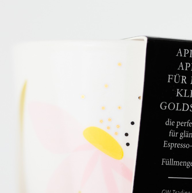 Die Goldveredelung sorgt für glänzende Akzente und macht die Tasse zu einem besonderen Lieblingsstück. Bitte beachte, dass sie aufgrund der Golddetails nicht für die Spülmaschine oder Mikrowelle geeignet ist. Damit sie dir lange Freude bereitet, empfehlen wir das Spülen von Hand.