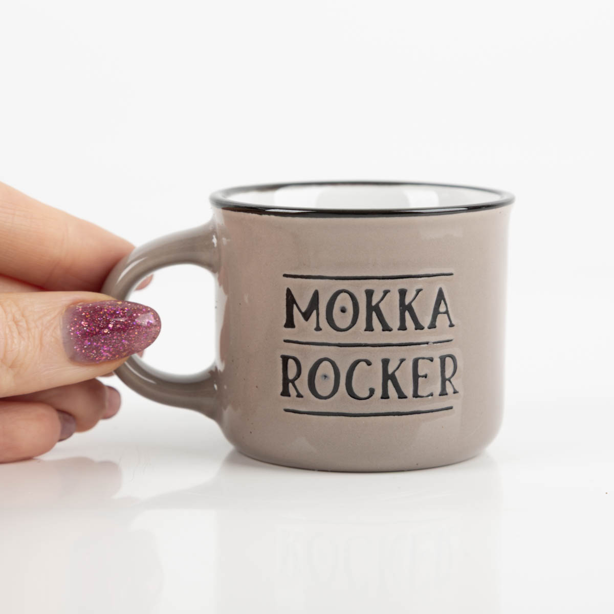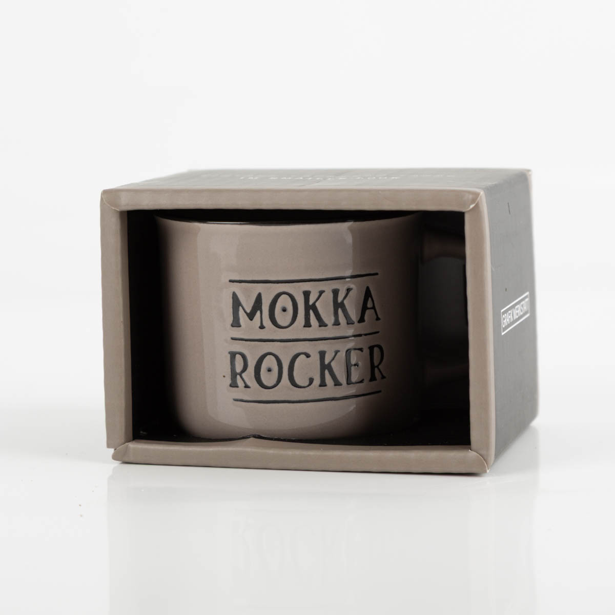 Die Espresso Tasse MOKKA ROCKER von Grafik Werkstatt ist das Must-have für alle, die ihren Espresso mit Charakter genießen. Im nostalgischen Emaille-Look und mit dem markanten Schriftzug „MOKKA ROCKER“ bringt sie coolen Retro-Style auf deinen Tisch.