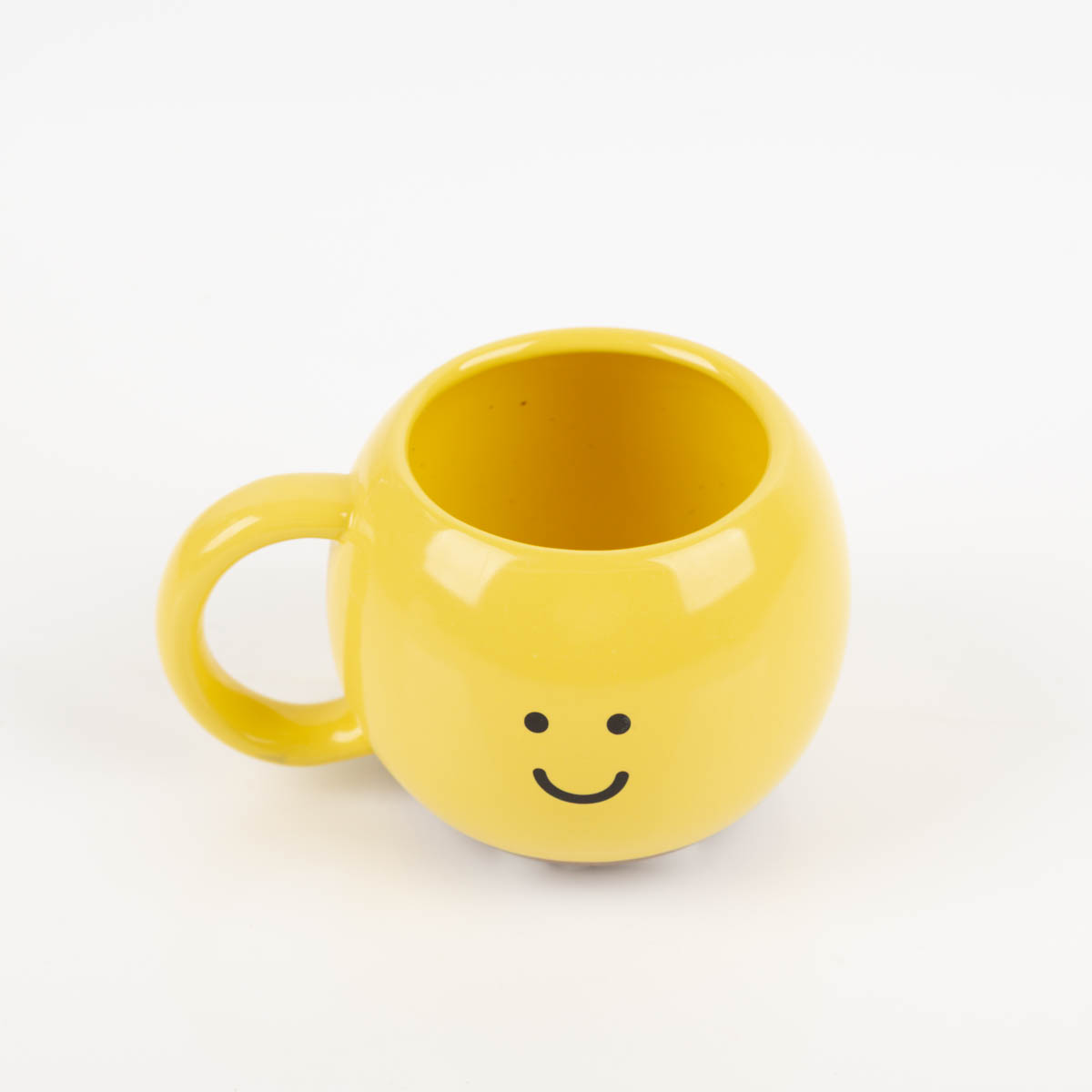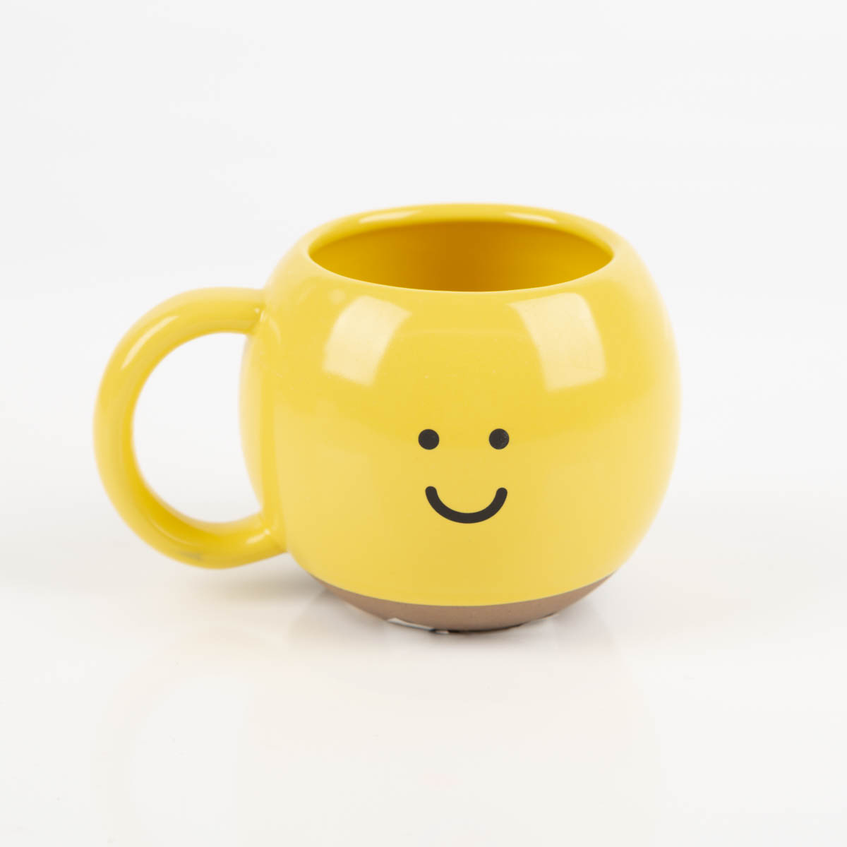 Handbemalte Keramiktasse in leuchtendem Gelb mit Smiley-Motiv