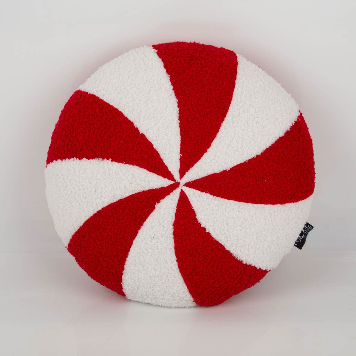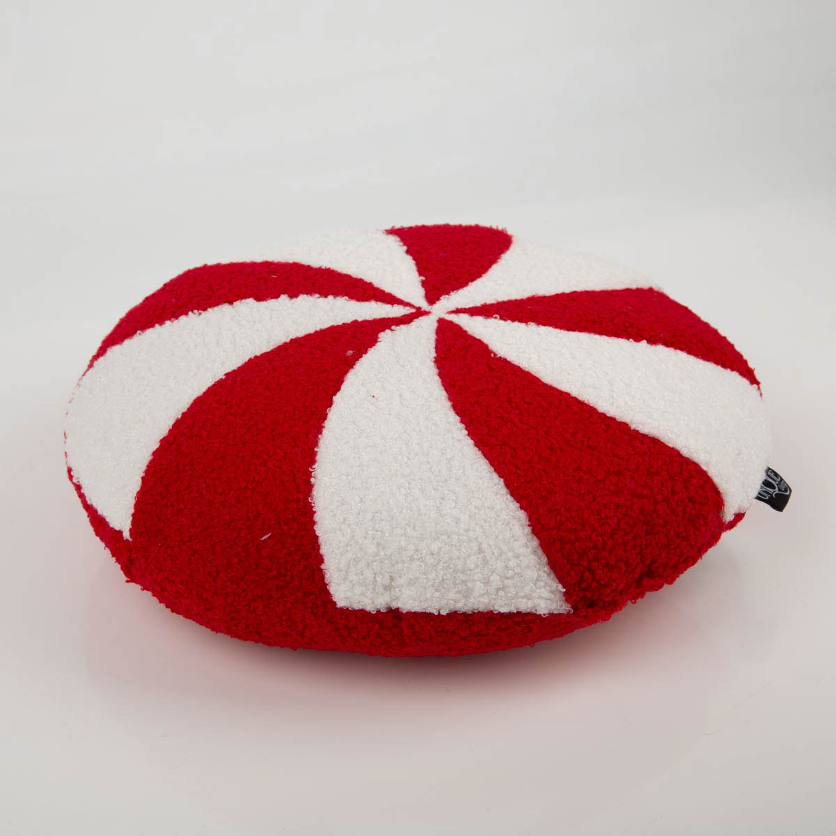 Dieses runde „Candy“-Kissen sorgt sofort für festliche Gemütlichkeit. Die weiche Teddy-Oberfläche lädt zum Reinkuscheln ein, die Vorderseite zeigt das typische rot-weiße Candy-Wirbelmuster, die Rückseite ist uni rot. Gefüllt und direkt einsetzbar.