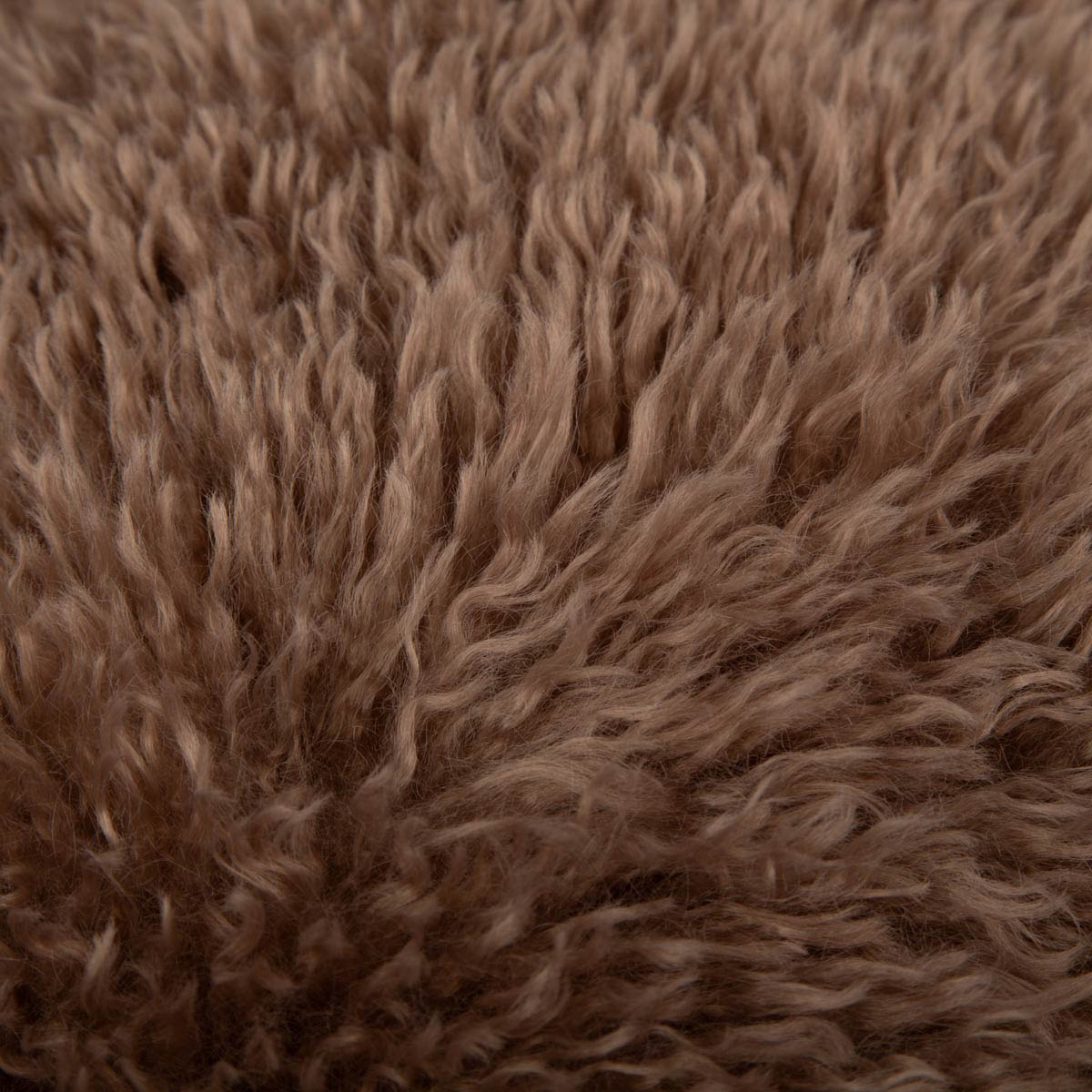 Vorderseite langhaariger Flokati mit Zotteleffekt, Rückseite uni taupe