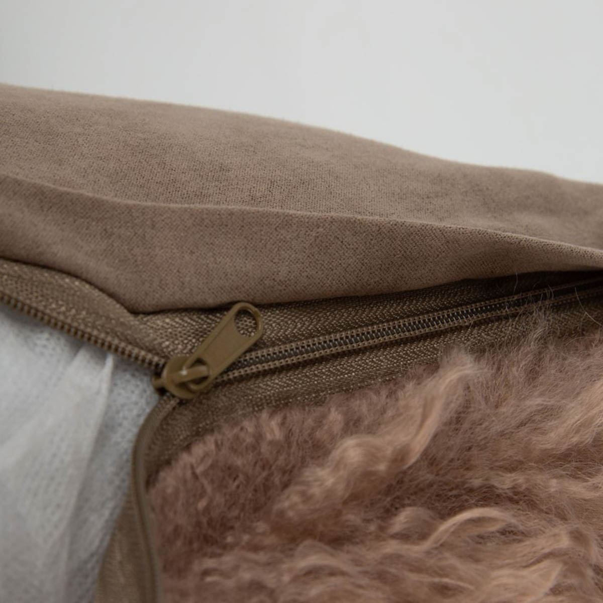 Rückseite: glatter, unifarbener Veloursstoff in Taupe – schlicht und edel