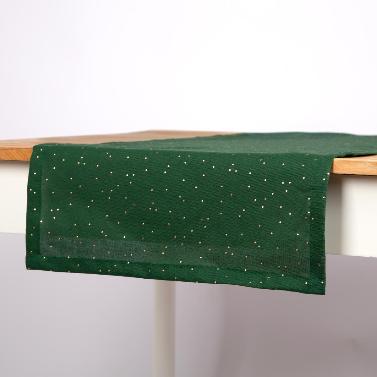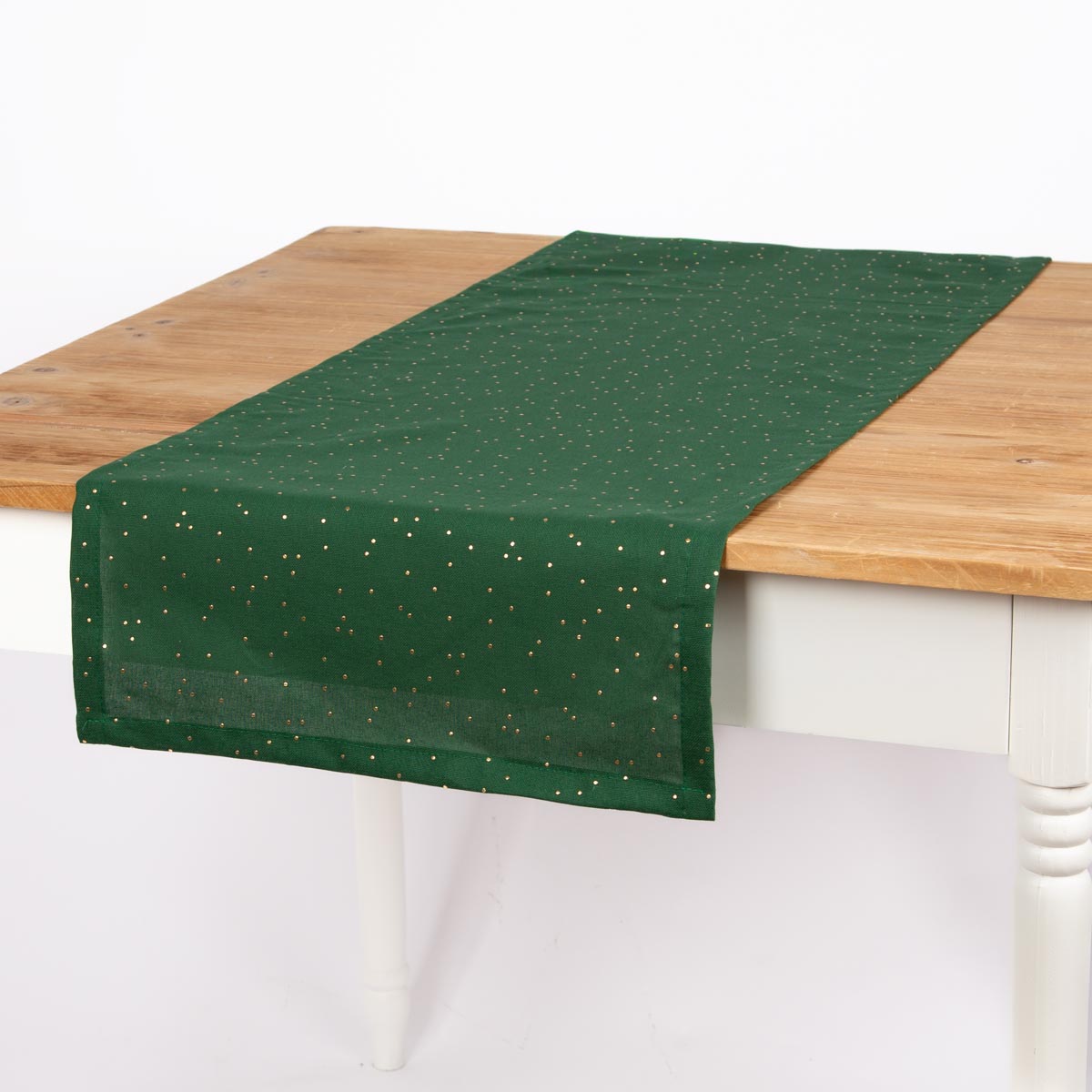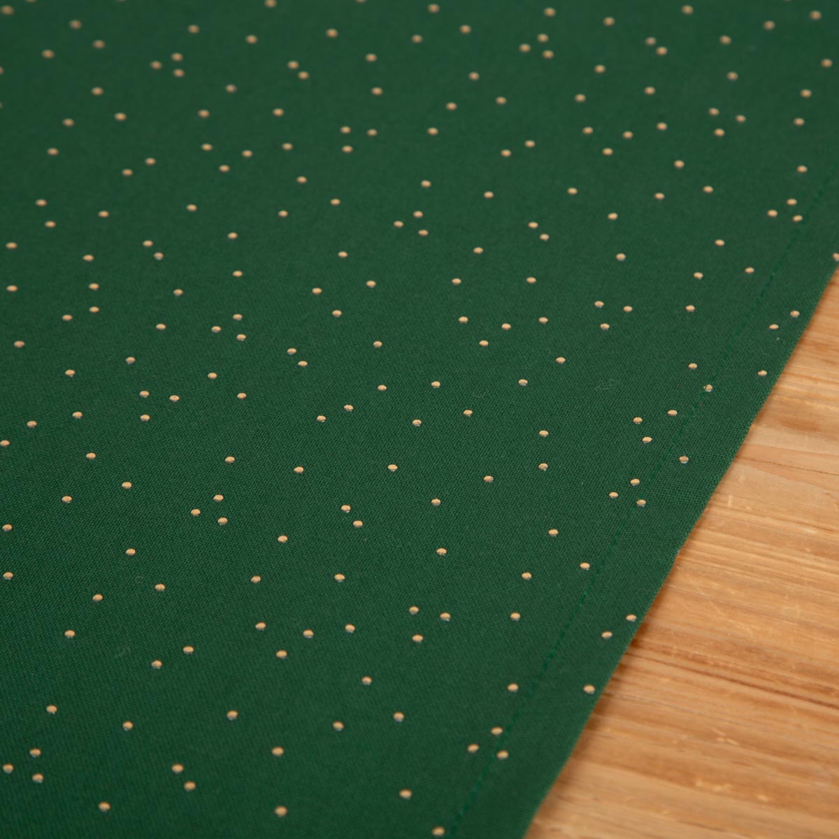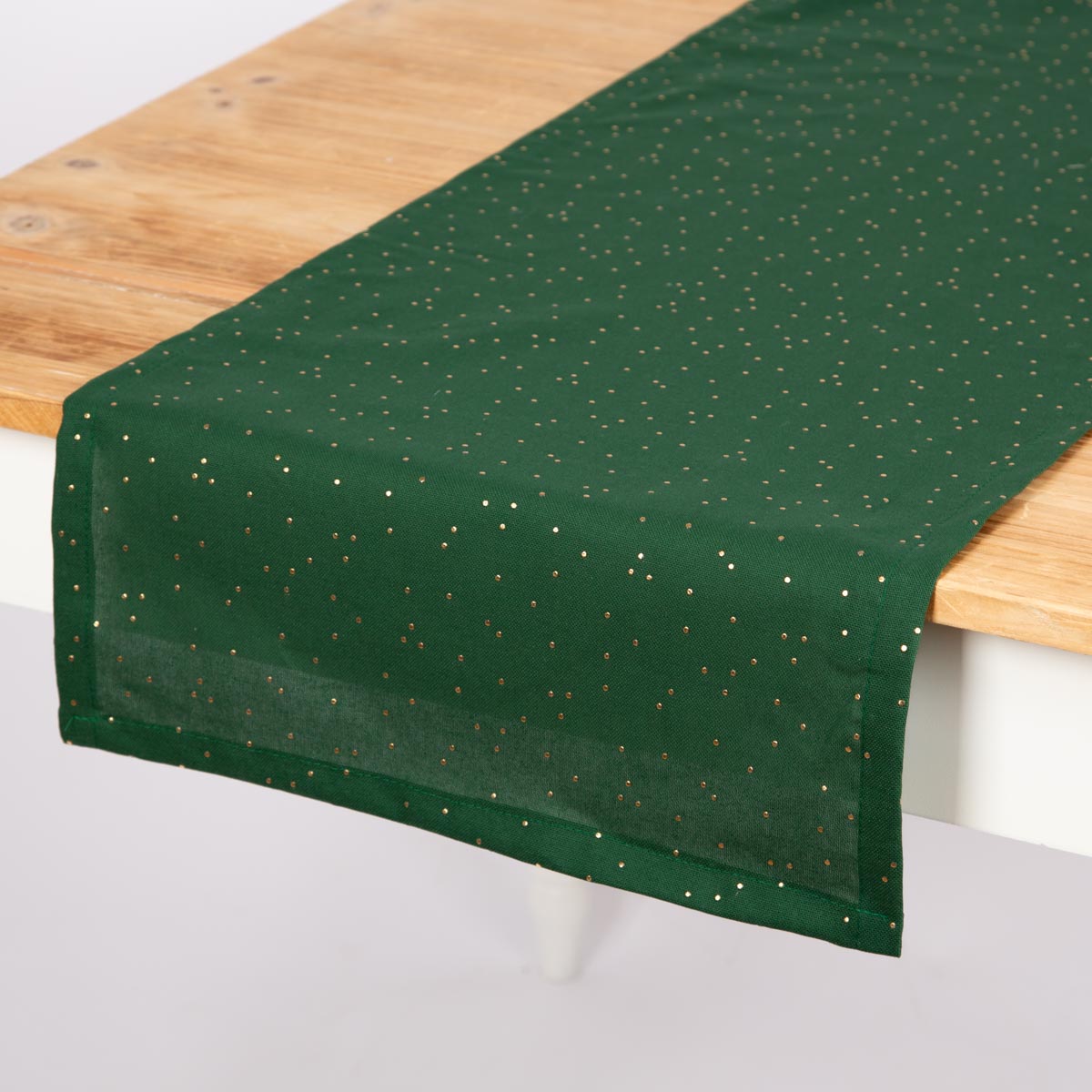 Elegantes Design: Grüner Tischläufer mit feinen goldenen Punkten für stilvolle Tischdekoration